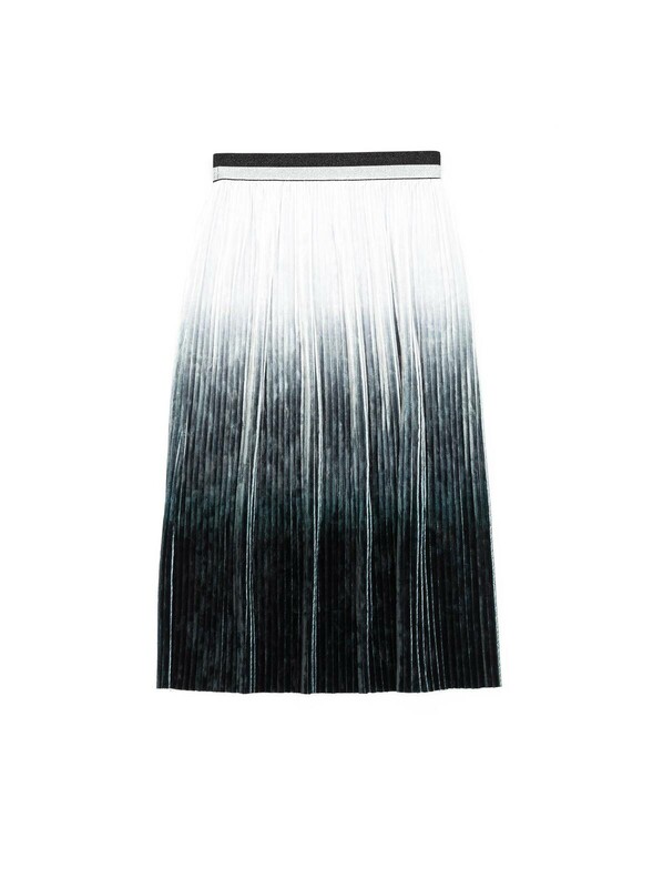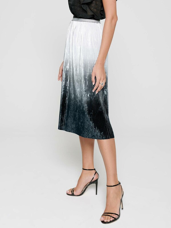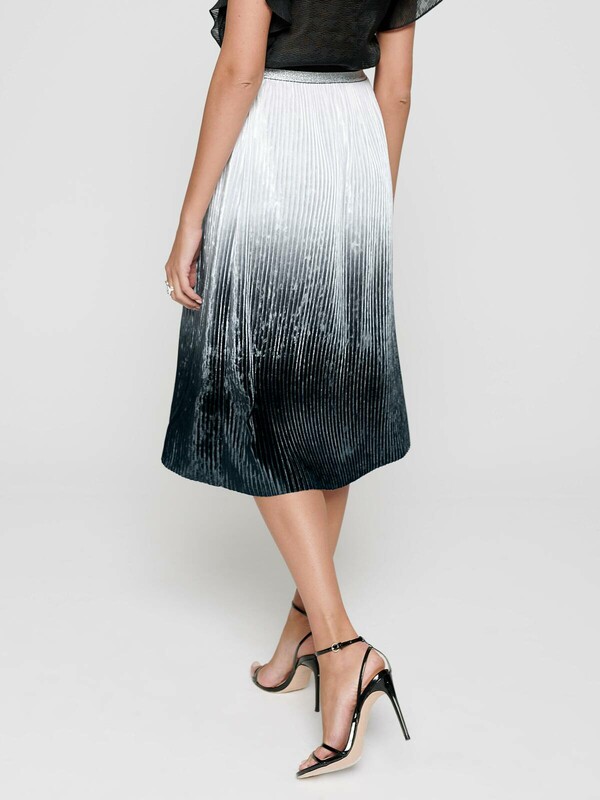 Велюровая юбка Amber с плиссировкой – это всегда отличная идея для стильного офисного дня, свидания или вечеринки. Ультрамодный велюр с ненавязчивым блеском и эффект градиента придает образу особый шарм. Вы не останетесь без внимания!
