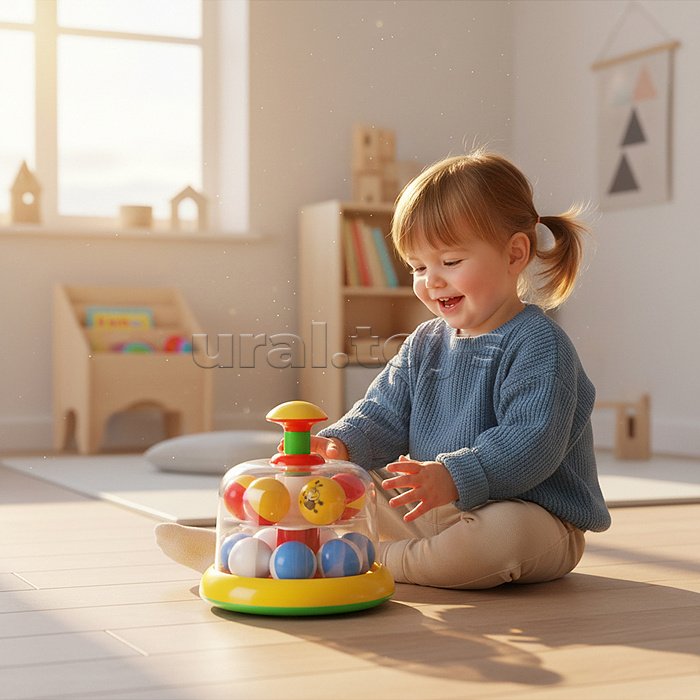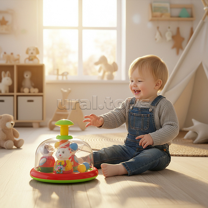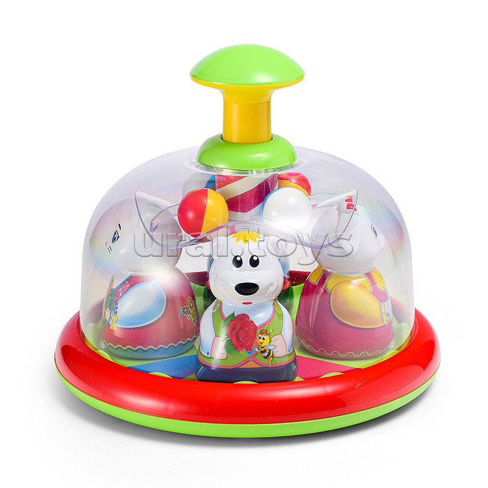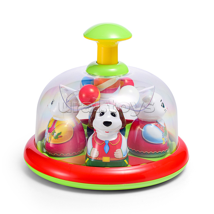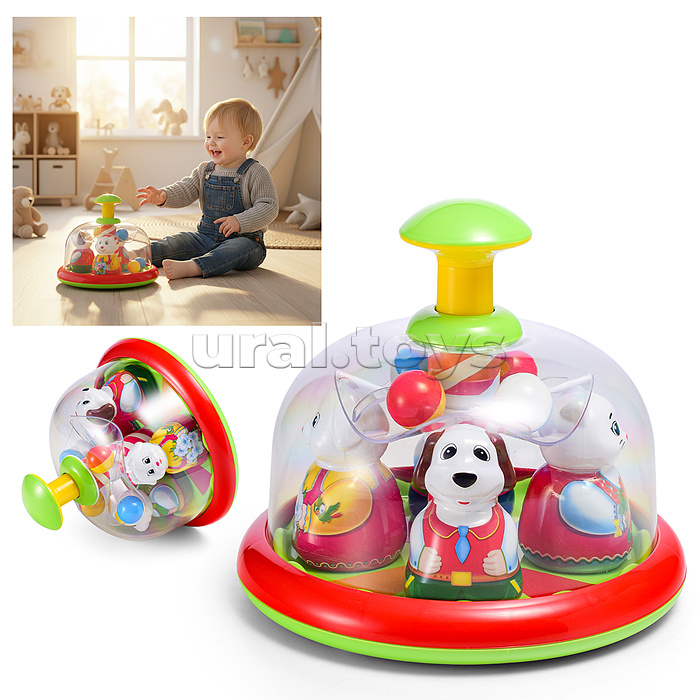 Юла-карусель «Аттракцион» - это развивающая игрушка для самых маленьких. Она напоминает детский аттракцион в парке с катающимися на нем зверушками. Малыш сам сможет запускать юлу-карусель и влиять на скорость вращения карусели, нажимая на большую кнопку сверху. После запуска зверушки в ярких костюмах начинают вращаться, привлекая внимание малыша. Под куполом юлы на прозрачной площадке находятся разноцветные шарики, которые при движении выкатываются к стенке купола, а при остановке возвращаются на свои места. • Размеры игрушки: 20х20х17.5 см. • Материал: полистирол. • Упаковка: пакет. • Соответствует требованиям безопасности и стандартам качества продукции. • Для детей от 6 месяцев.