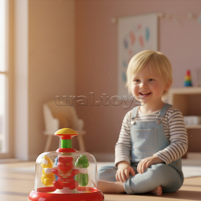 Код: 136670 Страна производитель: Россия Размеры упаковки: 17 x 17 x 17 см Количество в коробке: 4 • Юла заводится легким нажатием на рукоятку, что доступно даже младенцам. От прикосновений малыша запускается карусель под прозрачным куполом. Малыш может наблюдать за движением фигурок, влиять на их скорость и слушать звуки. • Юла прочно стоит на поверхности и «не убегает» от малыша, поэтому он может играть с ней даже в одиночестве. А цветовое решение игрушки полностью отвечает особенностям младенческого восприятия. • Размеры игрушки (ДхШхВ): 17х17х15 см. • Материал: полистирол. • Упаковка: пакет. • Рекомендация по уходу за юлой. Протирать влажной тряпкой, не мочить в воде. • Соответствует требованиям безопасности продукции. • Для детей от 6 месяцев. Комментарии к товару