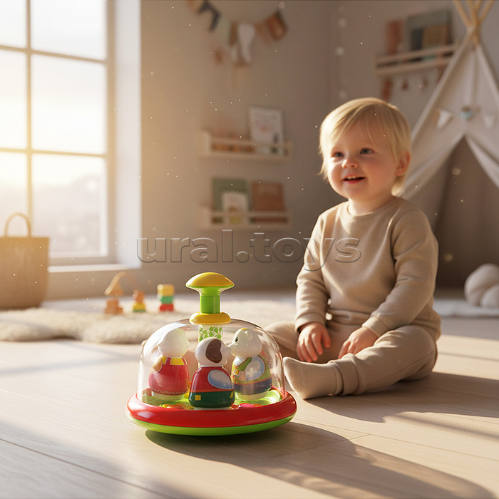 Код: 163967 Страна производитель: Россия Размеры упаковки: 24 x 22 x 19 см Количество в коробке: 4 Игрушка развивает сенсорную сферу, мелкую моторику. Формирует зрительно-моторную и зрительно-слуховую координацию. Знакомит со свойствами движущегося предмета. Нажимая на рычаг, звучит задорная мелодия под гармонь, карусель вращается, а зверята крутятся вокруг своей оси. • Размеры игрушки: 20х20х17.5 см. • Материал: полистирол. • Игрушка работает от 2-х батареек "LR41" (входят в комплект для демонстрации). • Соответствует требованиям безопасности продукции. • Для детей от 6 мес. Комментарии к товару