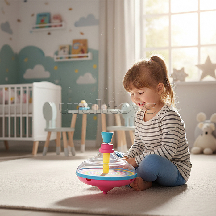 • Размеры игрушки: 14х14х16 см. • Юла вращается от плавного надавливания на ручку. • Вращение юлы ускоряется при частом надавливании. • Материал: полистирол. • Соответствует требованиям безопасности продукции. • Для детей от 3-х лет.
