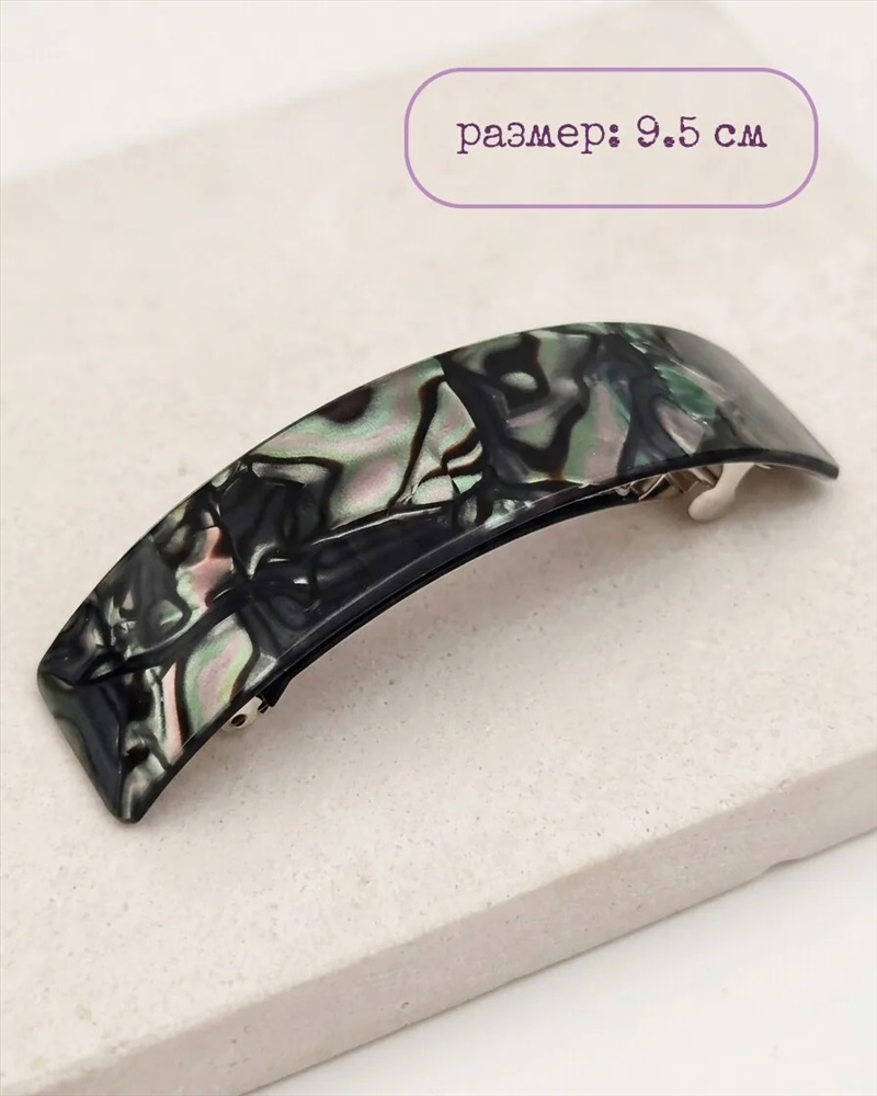 Вставка: Акрил Материал изделия: пластик Коллекция: Перламутровая коллекция Вид заколки: Автоматик Размер: 9.5 см Эта заколка легко изменит Ваш образ. Надежная легкая прочная , удобная сохранит Ваши волосы и прекрасно сформирует и удержит прическу. Производство Гонконг.