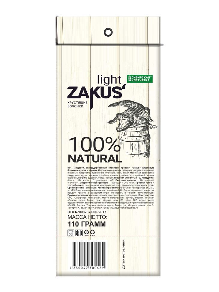 Порой хочется утолить голод чем-то ярким, острым, хрустящим, но останавливает состав подобных продуктов. Специально для таких случаев мы выпустили полезный ZAKUS' с луком и перцем. Полностью натуральные "хрустящие бочонки", обладающие соблазнительным вкусом и рядом неоспоримых преимуществ. Комментарии к товару
