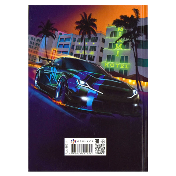 Записная книжка для мальчишек арт. 65914 НОЧНЫЕ ГОНКИ / А5, 145х205 мм, 64 л., твёрдый переплёт, полноцветная печать, тиснение серебряной фольгой, глянцевая ламинация. Блок - белый офсет, 80 г/м?, полноцветная печать