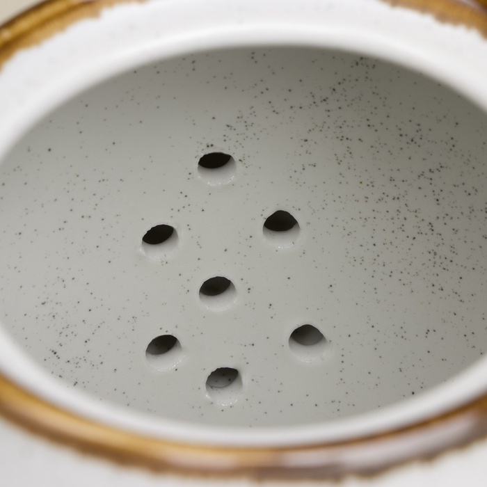 Габариты: 19 x 14 x 14,5 Страна: Китай В боксе: 8 шт Состав: Фарфор Материалы: фарфор Фасовка: по 1 шт Индивидуальная упаковка: Картонная коробка Габариты товара: 22 см × 13 см × 15,5 см Сертификат: СТР Цвет: Белый Объём, мл: 1000 Тематика: Полоски, полоса Рисунок: Да Материал крышки: Фарфор Можно мыть в посудомоечной машине: Да Можно использовать в СВЧ-печи: Да Комплектация: Фильтр Матовая поверхность: Да Материал чайника: Фарфор Фарфоровый заварочный чайник из серии «Волна в камне» от Sima-Land Home станет неотъемлемой частью вашей чайной церемонии. Его изящный дизайн, вдохновлённый природными мотивами, добавит утончённости вашему интерьеру, а матовая поверхность в сочетании с мягким бежевым оттенком придаст изделию элегантность и изысканность. Чайник объёмом 1 литр изготовлен из высококачественного фарфора, что гарантирует долговечность и сохранение тепла вашего любимого напитка. Особое внимание заслуживает удобная крышка, также выполненная из фарфора, которая плотно прилегает, сохраняя аромат и тепло чая. Благодаря отсутствию рисунка, чайник легко впишется в любой стиль сервировки стола, не отвлекая внимание от основной композиции.