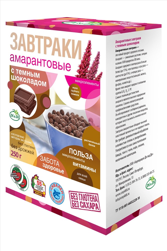 Состав: мука амарантовая грубого помола, мука рисовая грубого помола, мука кукурузная грубого помола, шоколадная глазурь (подсластитель изомальт, какао масло, заменитель какао масла нелауриновый, какао порошок, сухое молоко, эмульгатор – лецитин соевый, идентичный натуральному ароматизатор «ваниль», ванилин, подсластитель экстракт стевии (стевиозид)), мука амарантовая грубого помола, мука рисовая грубого помола, мука кукурузная грубого помола, топинамбур сушеный, соль.