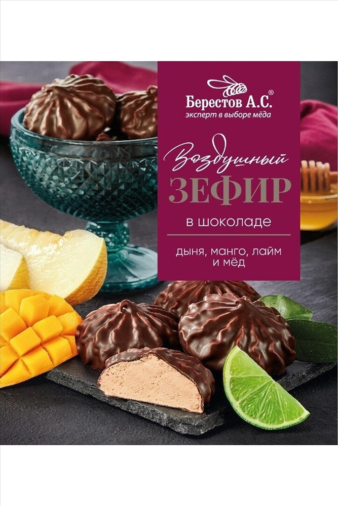 ID товара: 1183605 Сезон: Демисезон Производитель: Берестов А.С. Срок годности (мес): 4 Вес: (г), 155 Страна бренда: Россия Страна производства: Россия Зефир в шоколаде дыня, манго, лайм 155г Состав: Шоколад, сахар в т.ч тростниковый, пюре яблочное, плодовый наполнитель дыня манго - лайм, патока, белок яичный сухой, мёд натуральный, агар-агар (натуральный стабилизатор), лимонная кислота, стевия Комментарии к товару