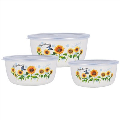 Производитель: ZEIDAN; Артикул поставщика: Z-80625-03 подсолнухи; Год: 2025; Высота упаковки, см: 18,8; Ширина упаковки, см: 8,9; Длина упаковки, см: 18,8 Набор мисок, 6 предм. (3 МИСКИ С КРЫШКАМИ: 0,7 Л (d14 см), 1,0 Л (d16 см), 1,7 Л (d18 см) с внутренним эмалированным покрытием), эмалированная сталь, внешнее покрытие - эмаль с рисунком. Подарочная упаковка.
