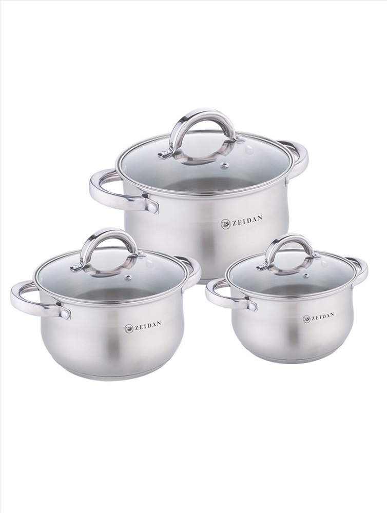 Производитель: ZEIDAN; Артикул поставщика: Z-50666; Год: 2025; Длина упаковки, см: 22; Ширина упаковки, см: 26; Высота упаковки, см: 22,5 Набор посуды ZEIDAN Z-50666 6 предм. , Набор посуды, 6 предм. Z-50666 (3 КАСТРЮЛИ С КРЫШКАМИ: 2.1 Л (d16 см ), 3.0 Л (d18 см ), 4.0 Л (d20 см ), нержавеющая сталь, 5-ти СЛОЙНОЕ КАПСУЛИРОВАННОЕ ДНО, крышки - стекло, внутренняя - матовая полировка, снаружи – комбинированная полировка.