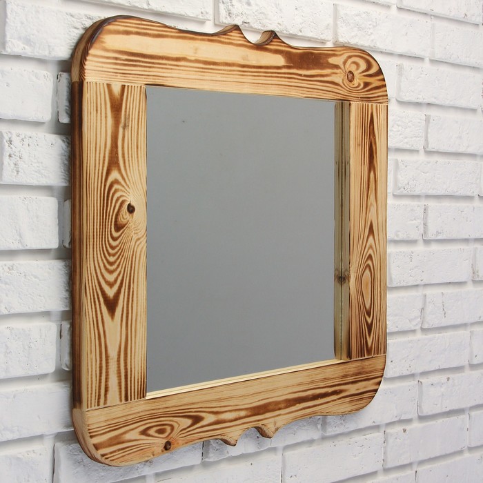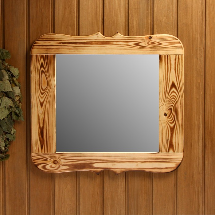 Такое зеркало подойдёт для бани и сауны. Дерево не выделяет вредных веществ при нагревании и подходит для помещений с высокой влажностью.