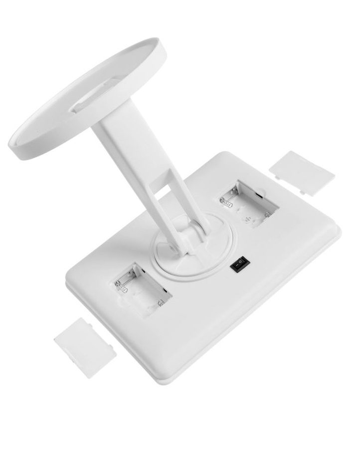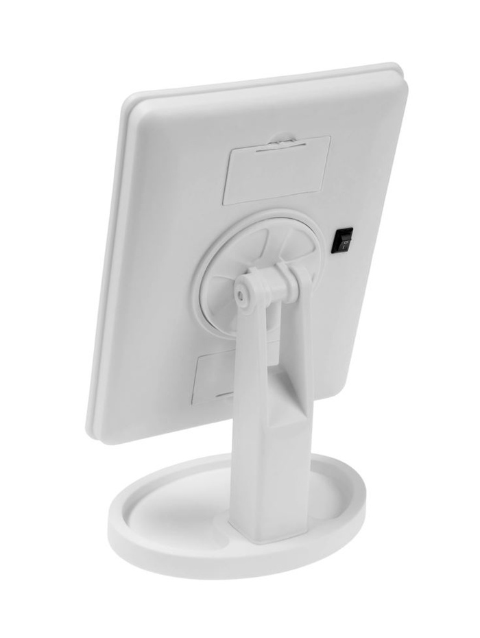 Настольное зеркало формата 26,5 × 16 см с LED-подсветкой и сенсорной кнопкой станет стильным и функциональным дополнением к вашему утреннему или вечернему уходу. Белый корпус идеально впишется в светлый интерьер, а равномерное освещение от встроенных светодиодов делает макияж и прическу более аккуратными и комфортными.