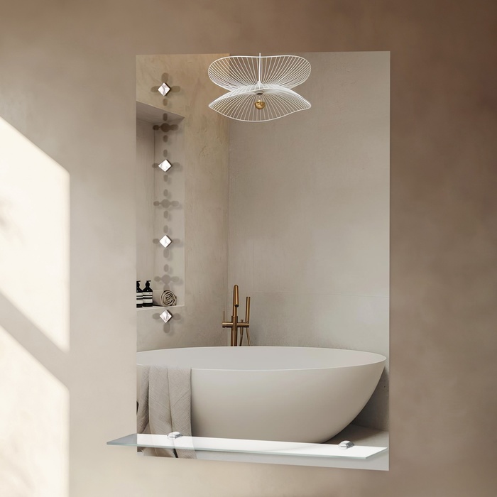 Зеркало с полкой не только выполняет свою главную функцию, но и имеет удобную полку для хранения различных предметов.
