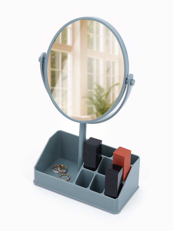 Организация и уход Этот аксессуар помогает поддерживать порядок на столе, сочетая зеркало и систему хранения. Увеличение облегчает уход за лицом и нанесение макияжа, а разноцветный дизайн добавляет живости интерьеру. Универсальное решение для домашнего использования и подарка. Комментарии к товару