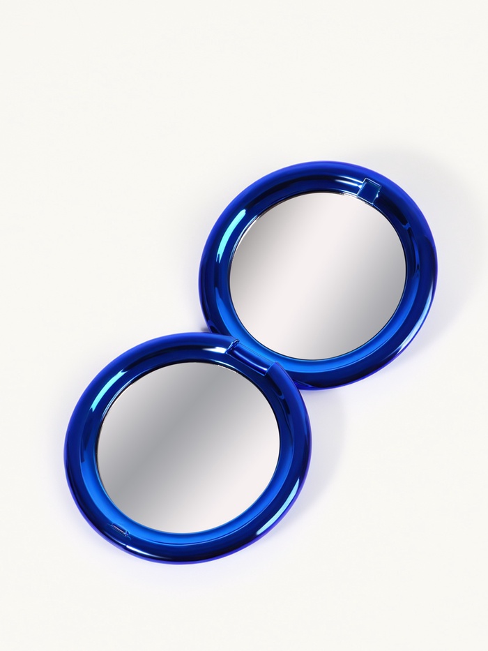 Этот аксессуар станет незаменимым спутником в повседневной жизни. Возможность быстро переключаться между обычным и увеличенным отражением помогает точно корректировать макияж и следить за деталями внешнего вида в любое время и в любом месте. Лёгкий и прочный корпус с удобным складным механизмом делает изделие практичным для путешествий и ежедневного использования. Яркий синий оттенок с металлическим блеском выделяет аксессуар среди других и добавляет индивидуальности в набор косметических принадлежностей.