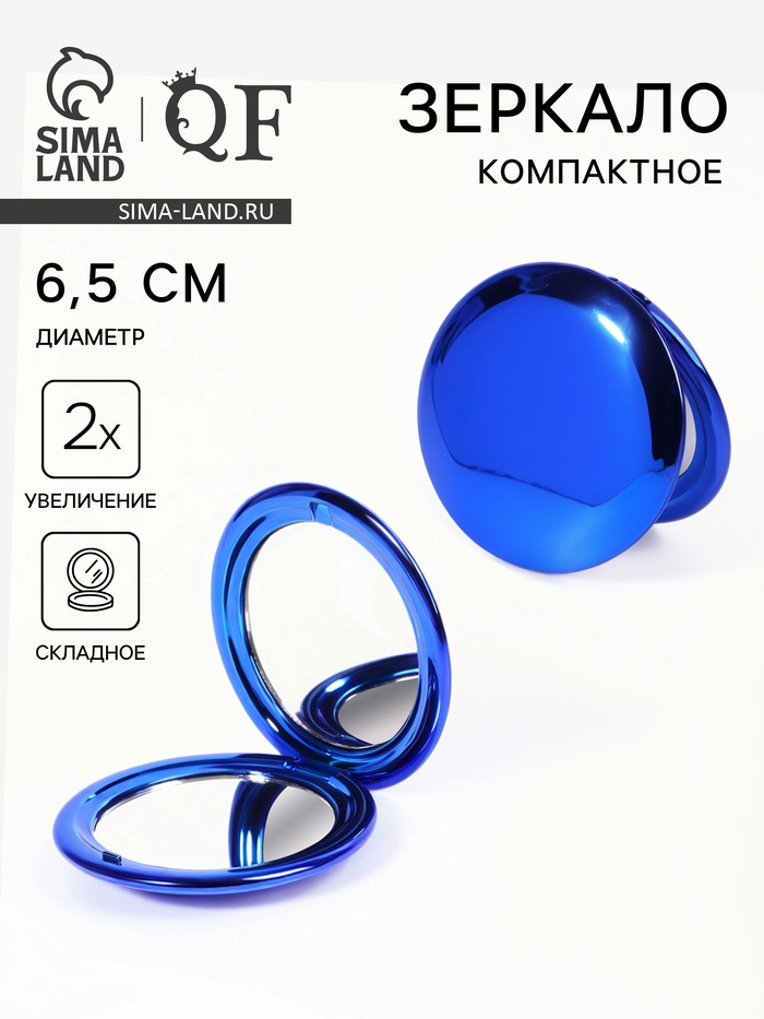 Компактное складное зеркало в насыщенном синем оттенке с металлическим блеском сочетает удобство и функциональность в одном аксессуаре. Его диаметр составляет 6,5 см, что позволяет легко носить изделие в сумочке или кармане, сохраняя при этом достаточную площадь для комфортного обзора. Двойная зеркальная поверхность включает стандартное отражение и увеличенное в 2 раза изображение, обеспечивая точность при нанесении макияжа или уходе за кожей. Пластиковый корпус отличается лёгкостью и прочностью, а складной механизм бережно защищает зеркала от царапин и пыли во время хранения и переноски.