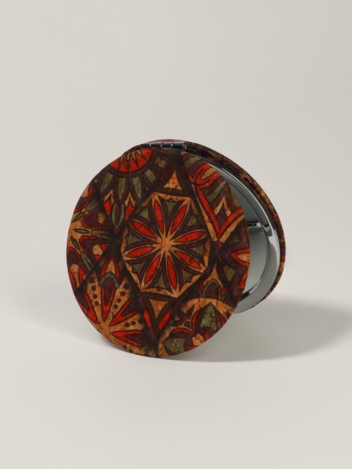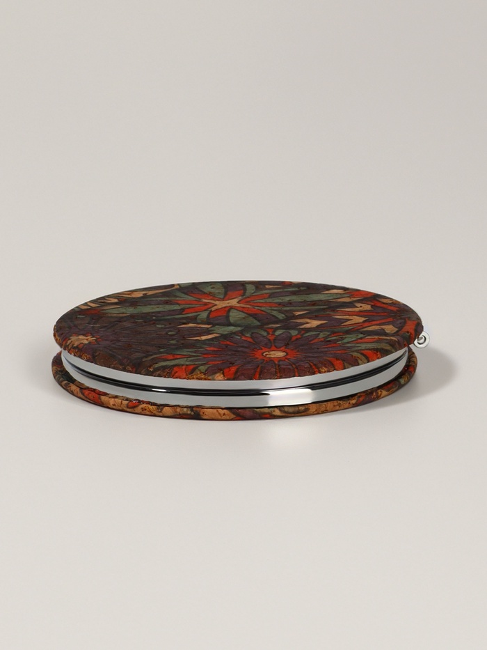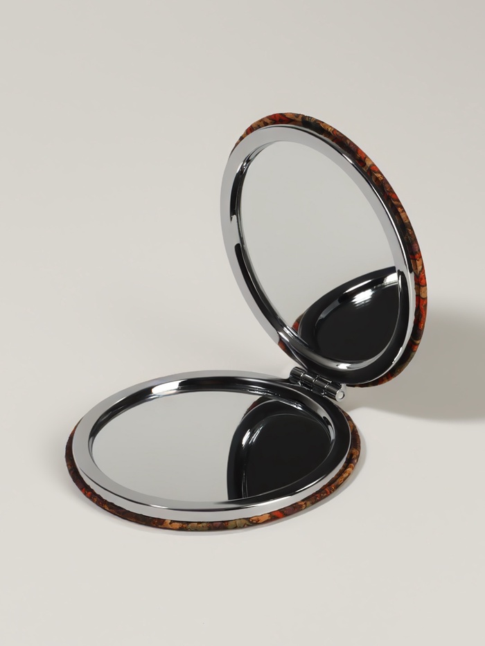 Такой аксессуар легко помещается в сумочке или косметичке, всегда готовый помочь поддержать аккуратный внешний вид в любой ситуации — дома, на работе или в путешествии. Орнаментальный дизайн добавляет индивидуальности и подчёркивает вкус владельца, превращая обычное зеркало в небольшой предмет искусства. Это практичное и стильное решение для тех, кто ценит качество и удобство в деталях.
