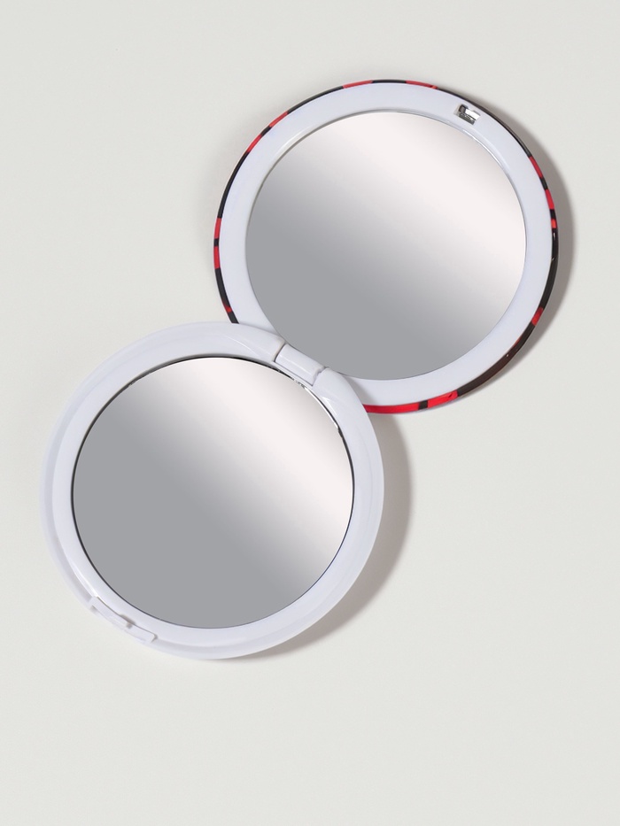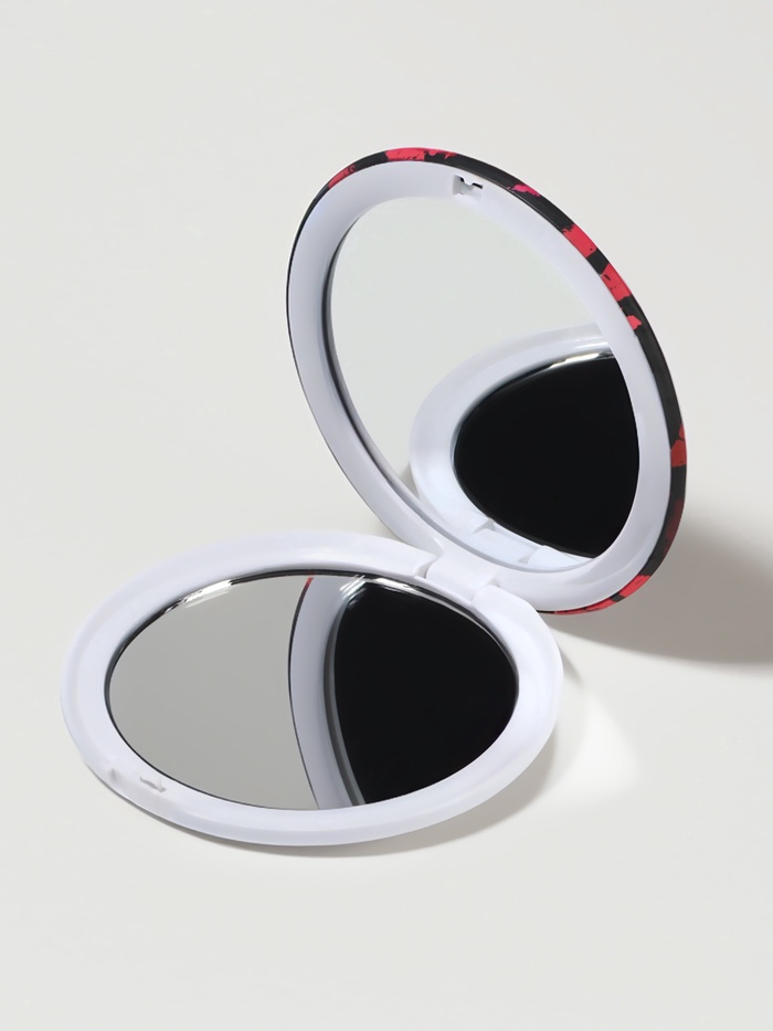 Удобство и функциональность в одном аксессуаре Этот аксессуар станет незаменимым помощником в ежедневных бьюти-рутинах, позволяя контролировать каждый штрих макияжа и ухаживать за кожей с максимальной точностью. Возможность переключаться между стандартным и увеличенным отражением помогает выявлять мелкие детали, которые могут остаться незамеченными при обычном зеркале. Складная конструкция позволяет бережно хранить зеркало и брать его с собой в путешествия, на работу или в повседневные поездки, сохраняя компактность и удобство. Чёрный корпус с разнообразными рисунками придаёт аксессуару индивидуальный характер, позволяя выбрать вариант, который отражает личный стиль и предпочтения. Такое зеркало сочетает в себе практичность, лёгкость и эстетическую привлекательность, делая уход за собой более комфортным и точным. Независимо от условий, этот компактный аксессуар помогает поддерживать аккуратный и ухоженный вид, обеспечивая удобство и надёжность в каждом отражении. ДополнительноКомментарии к товару