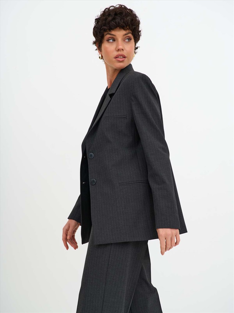 Однобортный жакет – отличный выбор для минималистичного гардероба. Отсутствие лишних деталей и прямой силуэт формирует выверенный образ. Жакет выполнен из плотного материала, который хорошо держит форму и будет легко сочетаться как с юбками, так и с брюками из экокожи. Рост модели 173 см, размер S.