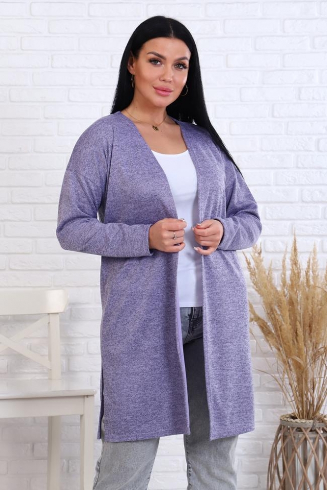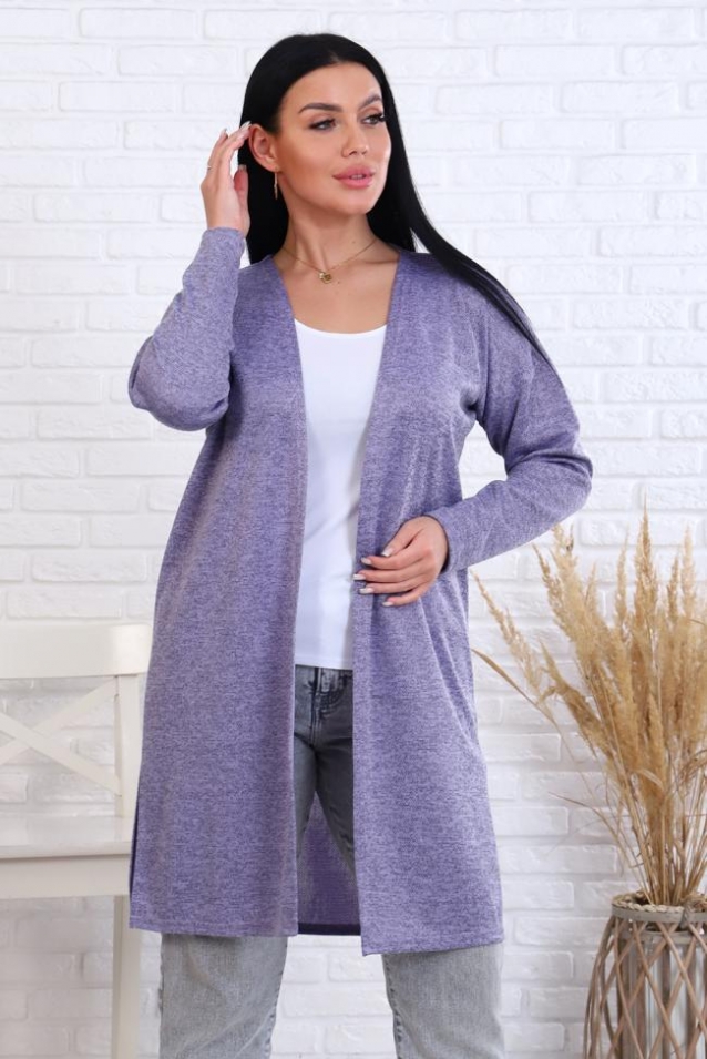 Модель свободного силуэта длиной до колена, по бокам разрезы, рукав длинный, выполнен из вязаного трикотажного материала Сандра. Кардиган прекрасно впишется в гардероб любой модницы, его можно сочетать с любыми вещами, идеален для прогулок, в поездке, в офисе, сохраняет тепло, не мнётся и не колется. Длина рукава в замерах указана от горловины.