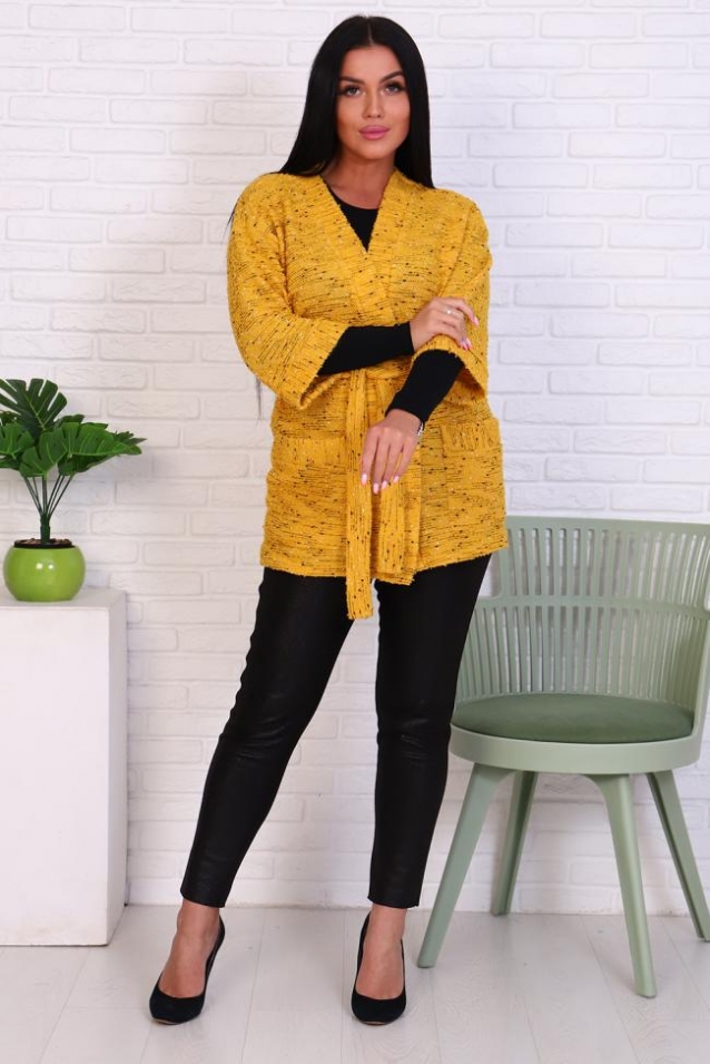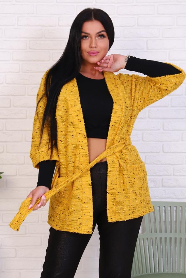 Стильный жакет из мягкого трикотажа БУКЛЕ с цветными вкраплениями. Модель свободного кроя с глубоким вырезом, передние полочки, накладные карманы и рукав гармонично оформлены широкой планкой, его можно носить как с поясом? так и без него. Жакет - это незаменимая вещь в гардеробе каждой современной девушки. Его простой крой, необычный, универсальный дизайн и удобный фасон не обойдут ни одну модницу стороной. Трикотаж БУКЛЕ приятный к телу, не колется.