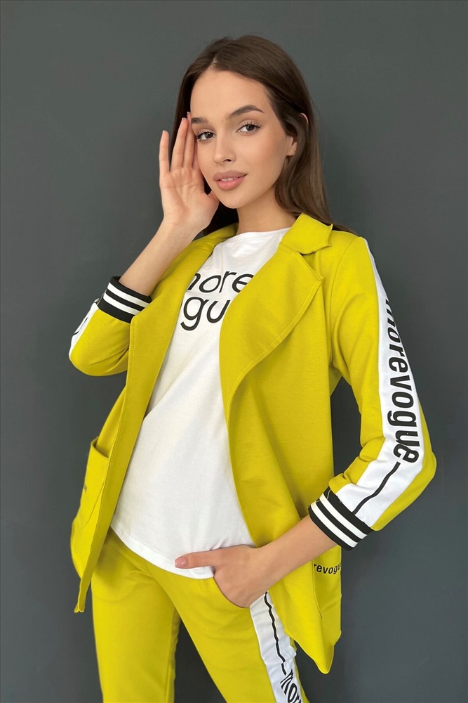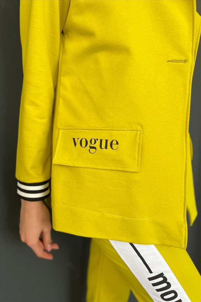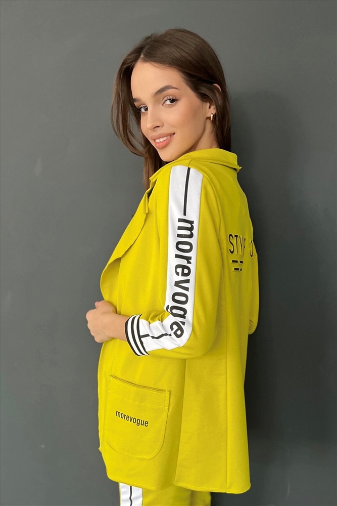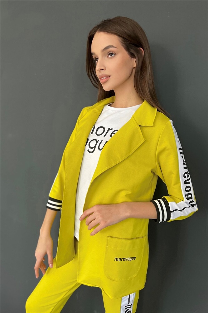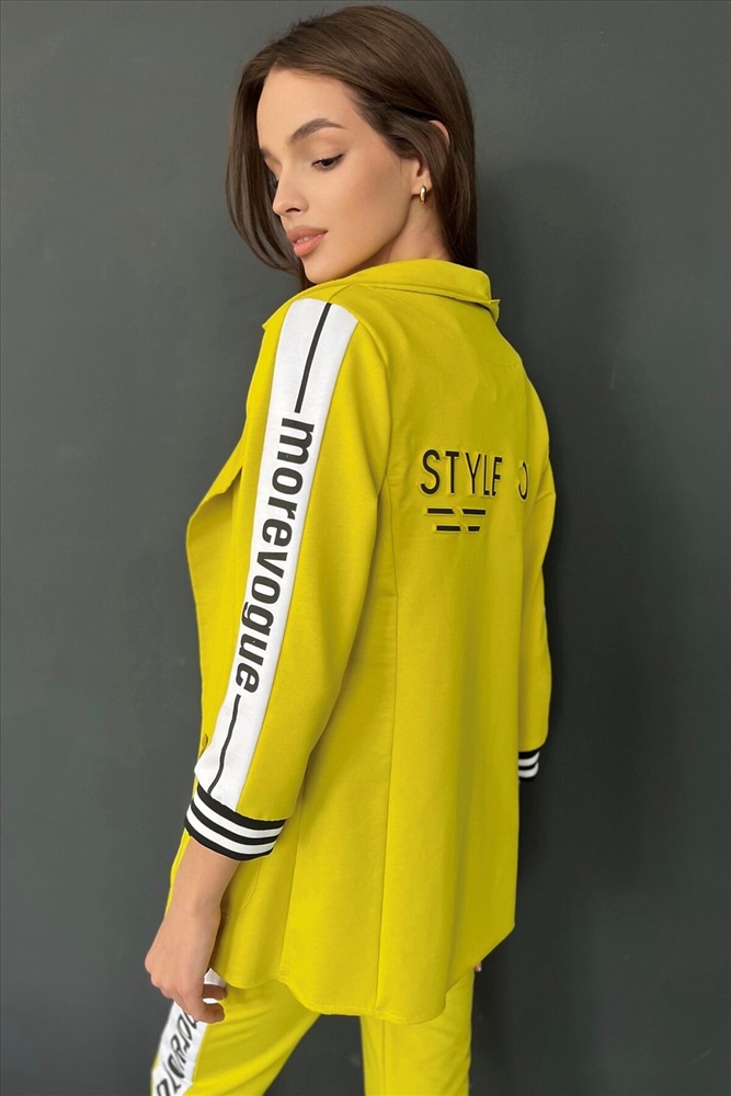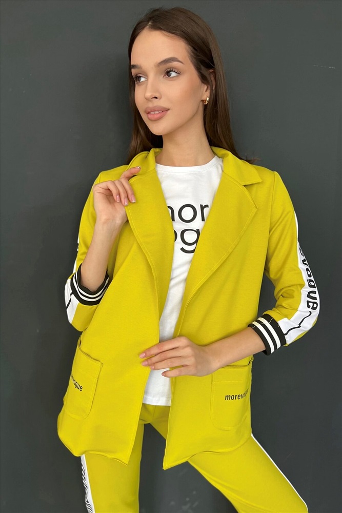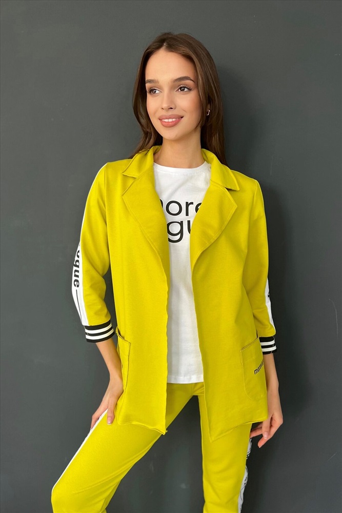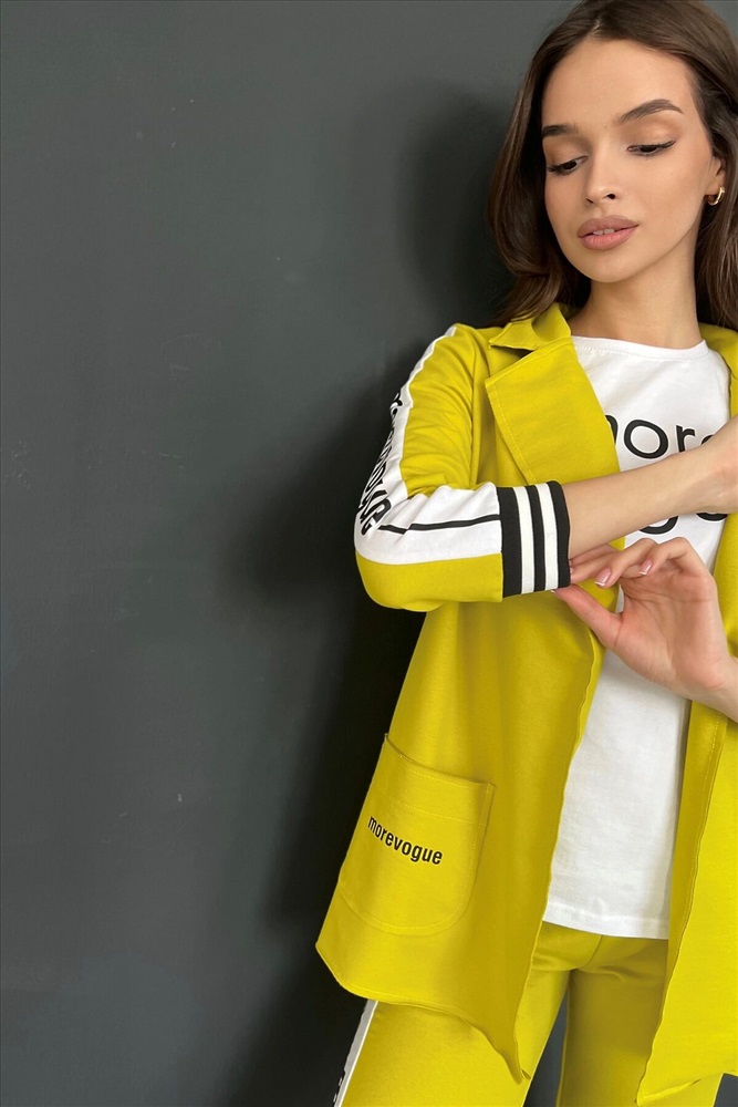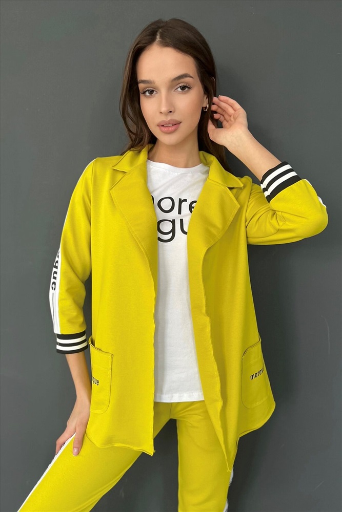 ID товара: 764880 Состав: Хлопок 72%, Полиэстер 20%, Эластан 8% Сезон: Весна/Лето Длина: Средняя Фасон: Полуприлегающий Рукав: 3/4 Рисунок: Надпись Тип карманов: Накладные Декоративные элементы: Печатный принт Основная ткань: Хлопок | Футер с лайкрой 2-х нитка Стиль: Повседневный Страна бренда: Россия Страна производства: Россия Жакет полуприлегающего силуэта, длиной до середины бедра, с английским воротником. Рукав втачной, длинной 7/8, с отделочным лампасом вдоль рукава, на эластичном манжете. В нижней части полочки расположены накладные карманы. Спинка с рельефами. Комментарии к товару
