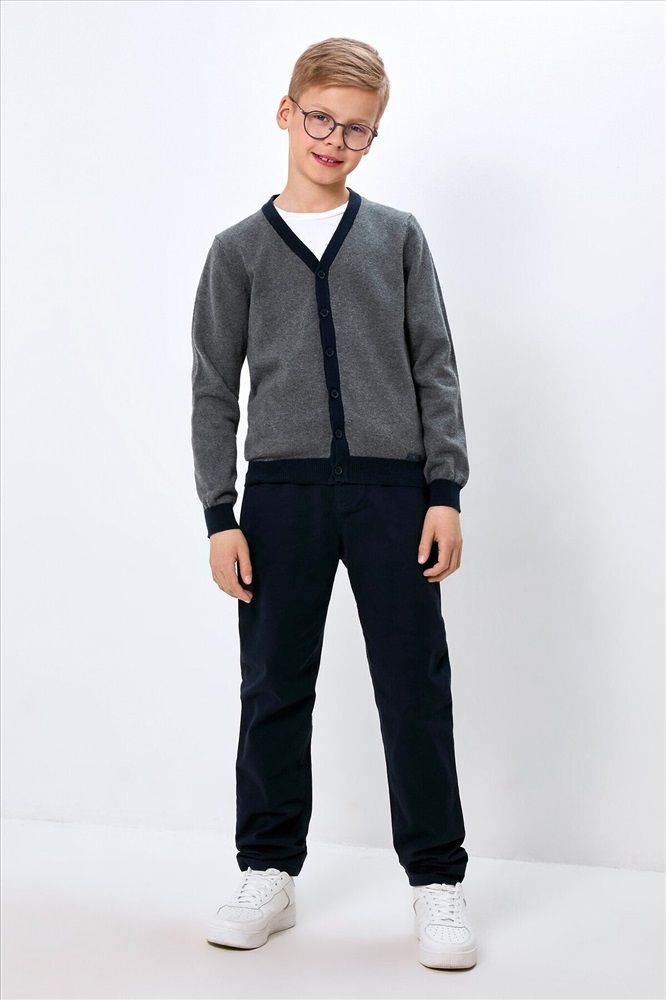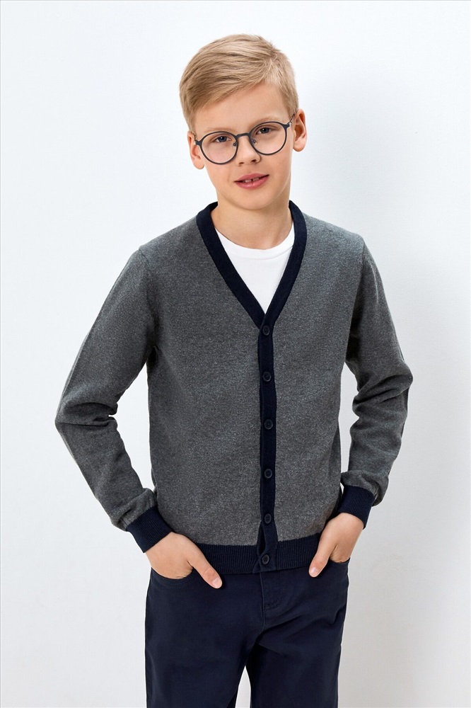 ID товара: 1072835 Состав: 100%Хлопок Сезон: Осень/Зима Длина: Средняя Страна бренда: Россия Страна производства: Китай Вязаный кардиган на пуговицах для мальчика. Изготовлен из 100%-ного гипоаллергенного хлопка, который позволяет коже дышать. Декоративная вставка из шамбре на спинке внутри повышает износостойкость изделия. По горловине внутри идёт тесьма, внизу изделия металлическая нашивка с надписью «SMART GENERATION» англ. – «Умное поколение», пуговицы с имитацией рога. Комбинируйте жакет с рубашкой и брюками для создания повседневного делового образа. Модель представлена в четырёх вариантах расцветки: холодный синий, серый меланж, тёмно-синий и тёмно-серый. Комментарии к товару