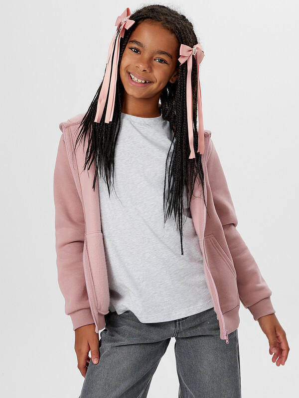 Производитель: Mark Formelle Жакет из трикотажного футера с теплым подчесом. Спущенная линия плеча гарантирует свободу движений. Прямой свободный силуэт, уютный капюшон, длинные рукава на манжетах, удобный карман-кенгуру, центральная застежка на молнию – эта модель наверняка понравится вашей девочке.