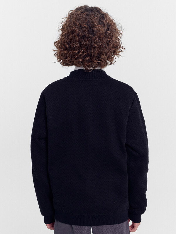 Спортивный жакет-бомбер прямого силуэта для мальчиков. Спереди застегивается на молнию. Рукава длинные, линия плеча спущенная, что дарит особый комфорт движениям. Есть удобные боковые карманы. Воротничок, пояс на нижнем срезе и манжеты выполнены из эластичной рибаны. Рекомендуем!