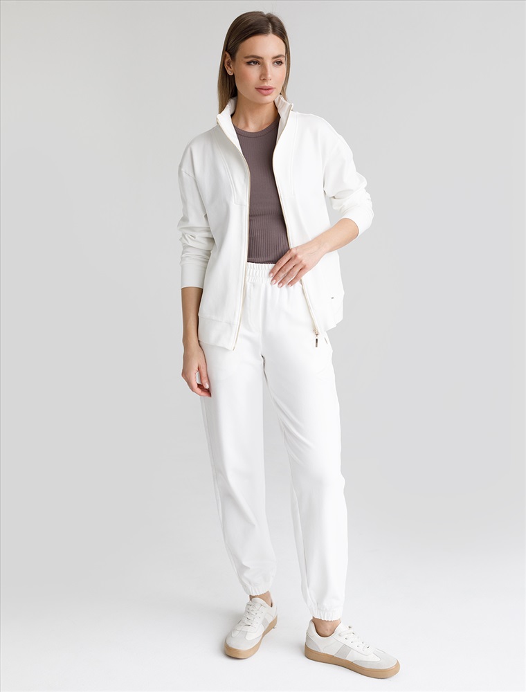 Состав: 95%Хлопок 5%ПУ; Плотность: 240 Г/м2; Параметры модели на первом фото: Рост 170, бюст 89, талия 63, бедра 92 Жакет выполнен из футера двухнитки с эластаном. Модель без карманов с воротом стойка и застежкой на молнию золотистого цвета. Эластичный материал гарантирует комфорт и формоустойчивость. Сочетается в костюме с брюками D44.138, D44.139, D44.140 и шортами D48.008. Изделие дополнено металлическим логотипом бренда.