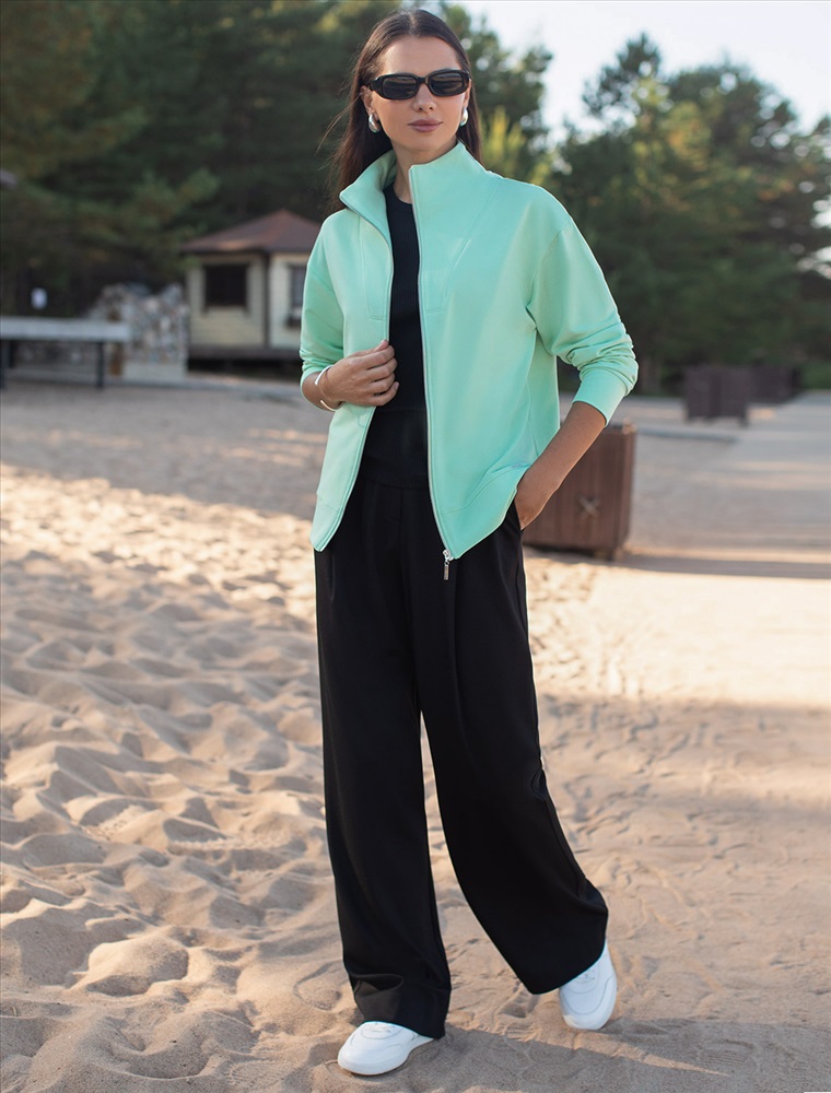 Жакет выполнен из футера двухнитки с эластаном. Модель без карманов с воротом стойка и застежкой на молнию серебристого цвета. Эластичный материал гарантирует комфорт и формоустойчивость. Сочетается в костюме с брюками D44.138, D44.139 D44.140 и шортами D48.008. Изделие дополнено металлическим логотипом бренда.