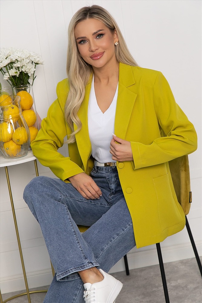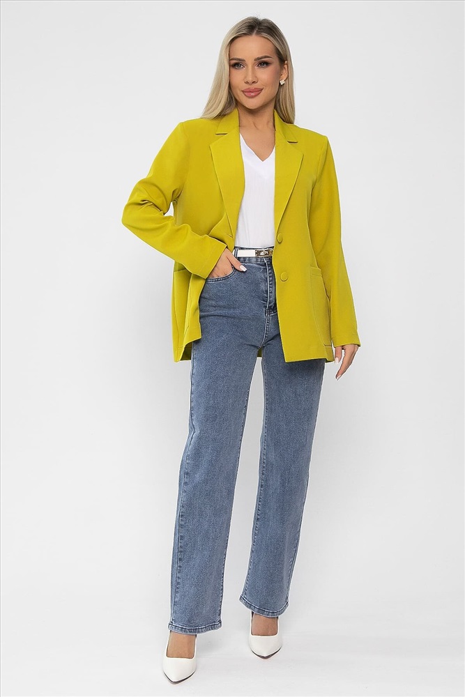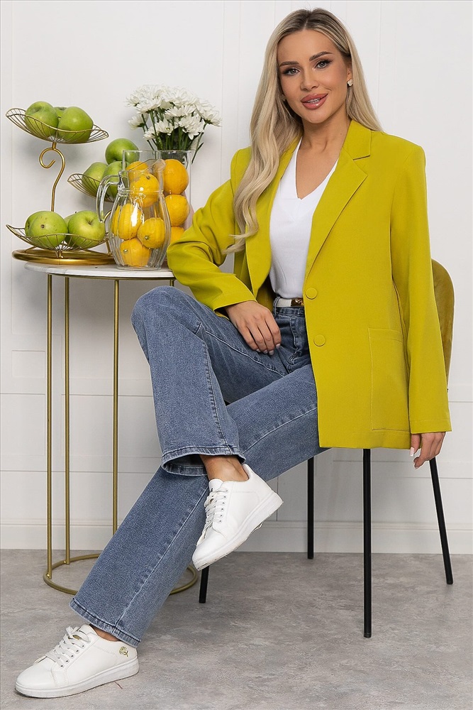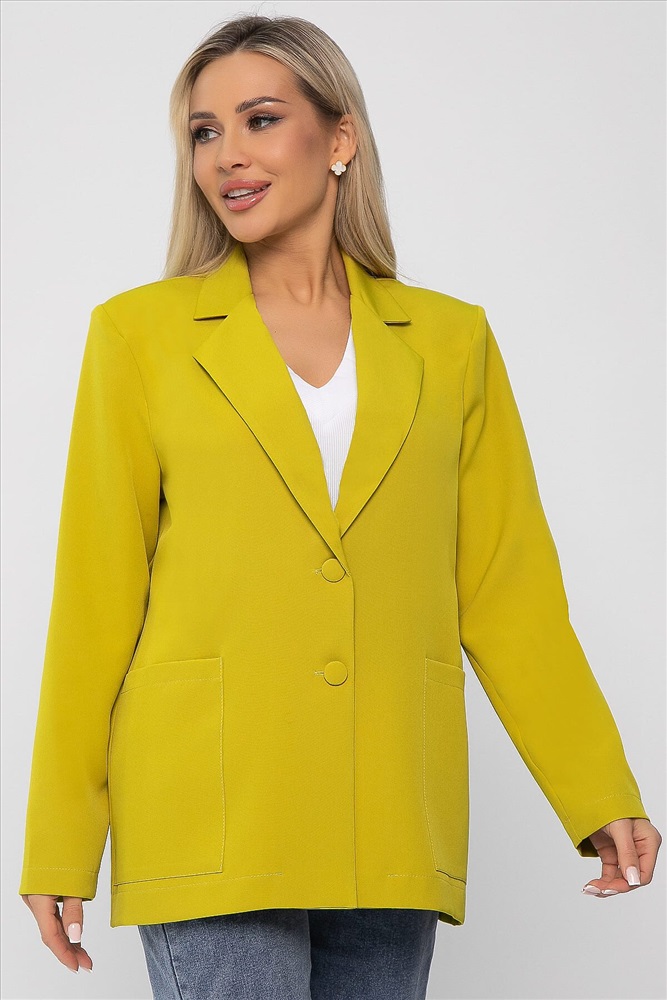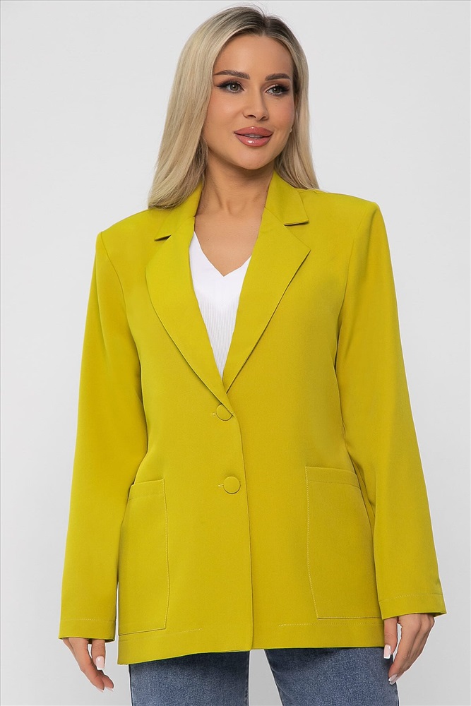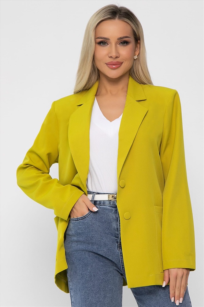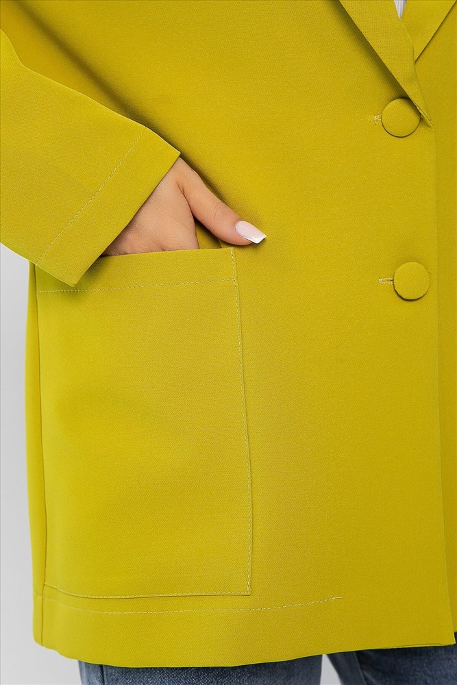 Создайте безупречный деловой образ с нашим классическим женским пиджаком в горчично-зеленом оттенке. Этот элегантный пиджак идеально подходит как для офисных встреч, так и для вечерних мероприятий. Он оснащён полными рукавами, ко