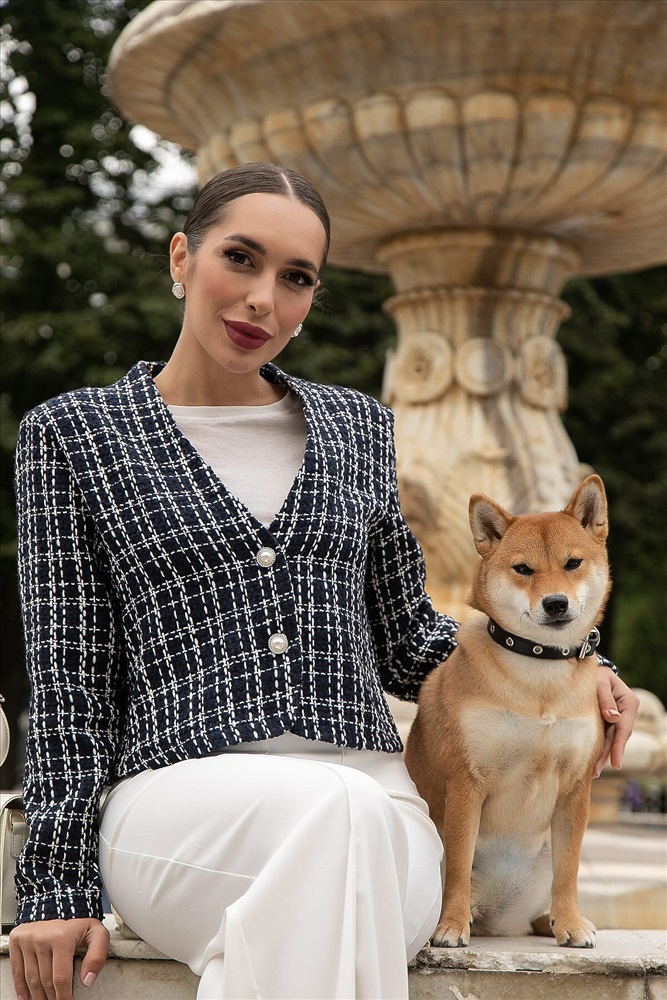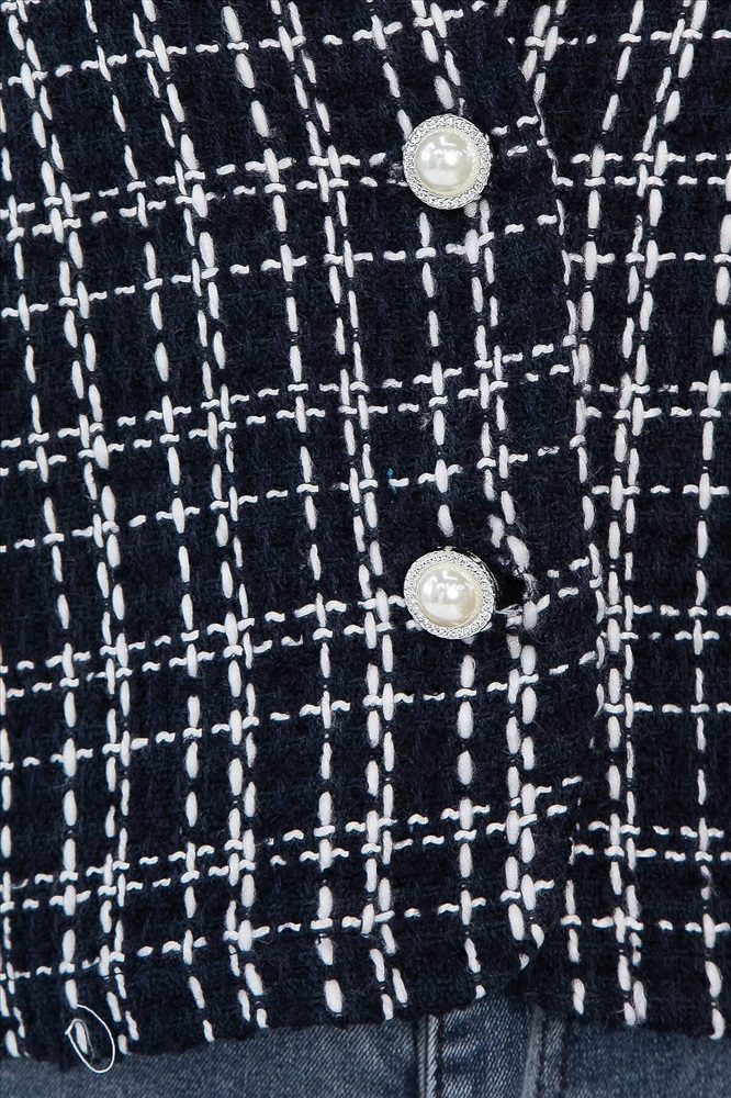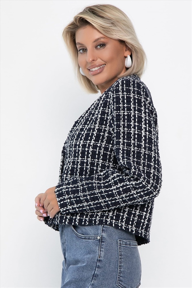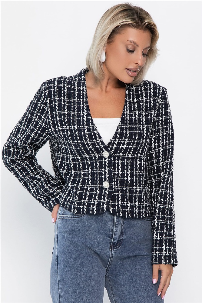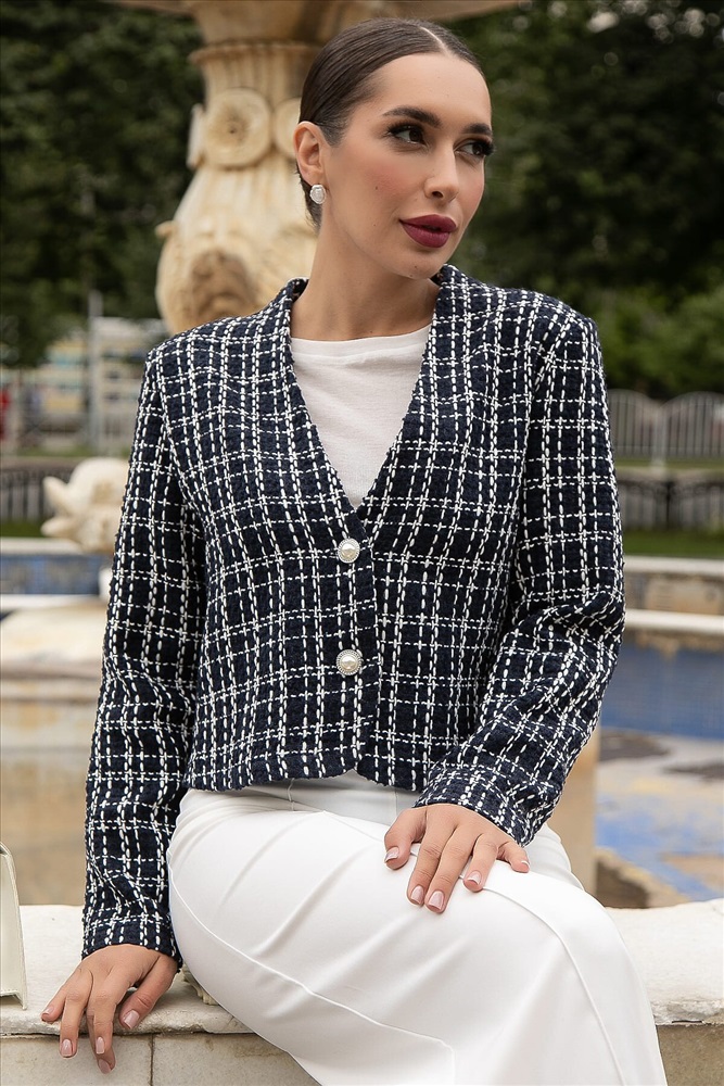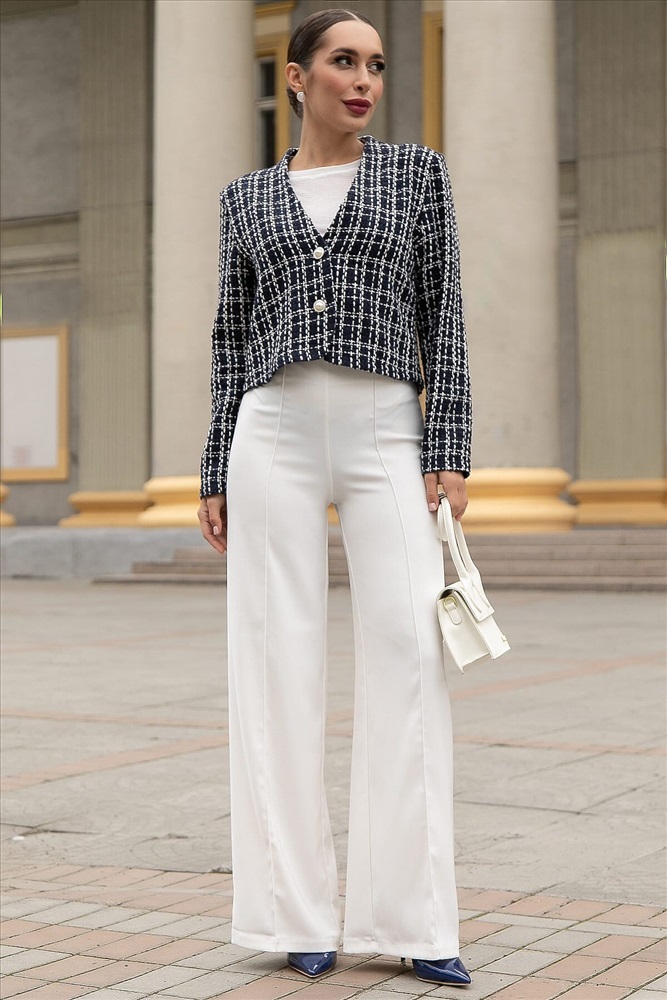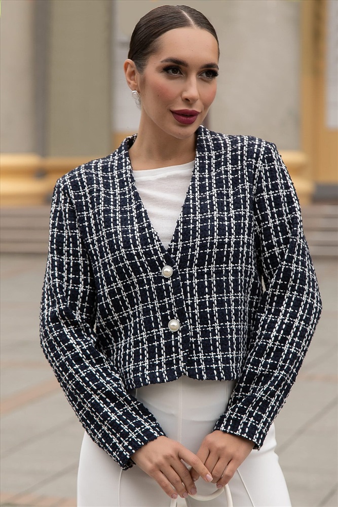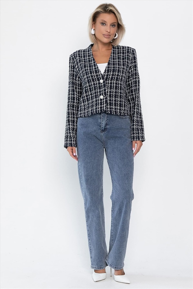 ID товара: 1183583 Состав: 40% Хлопок, 30% Вискоза, 30% Полиэстер Сезон: Демисезон Длина: Укороченная Фасон: Прямой Рукав: Длинные Вид застежки: Пуговицы Вырез горловины: V-образный Рисунок: Клетка Основная ткань: Хлопок Стиль: классический Страна бренда: Россия Страна производства: Россия Состав : 40% хлопок, 30% вискоза, 30% полиэстер Материал : твид Цвет : Синий Принт : клетка Силуэт : прямой Карманы : Отсутствуют Подкладка : Отсутствует Вид застежки : пуговицы Декоративные элементы : отсутствуют Длина : 44-53 см, 46-54 см, 48-55 см, 50-56 см, 52-57 см, 54-58 см Отснято с белыми брюками Б12685-13 [ https://ltcollection.ru/catalog/bryuki/161858/ ] и с джинсами Б13450-12М [ https://ltcollection.ru/catalog/bryuki/169715/ ] Женский укороченный твидовый жакет — это воплощение классики и стиля, перед которым невозможно устоять. Он идеально подходит как для деловых встреч, так и для повседневного образа. Легко сочетается с джинсами, юбкой-карандаш или брюками. Этот жакет подчеркнет вашу индивидуальность и добавит нотку изысканности. Он гармонично впишется в гардероб каждой женщины, которая хочет выглядеть стильно и уверенно. Внимание! Рекомендуем ориентироваться на размерную сетку и выбирать свой привычный размер, согласно размерной таблице. *Допуск отклонения длины при массовом производстве 1-3 см является нормой. Уход за изделием: Ручная стирка или стирка в машине при температуре до 30 °C, деликатный режим. Не использовать отбеливатели. Разрешена глажка при температуре до 110 °C. При глажке использовать специальную насадку на подошве утюга, гладить с паром. Не замачивать и не выжимать. Стирать изделие наизнанку, отдельно от других вещей. Комментарии к товару