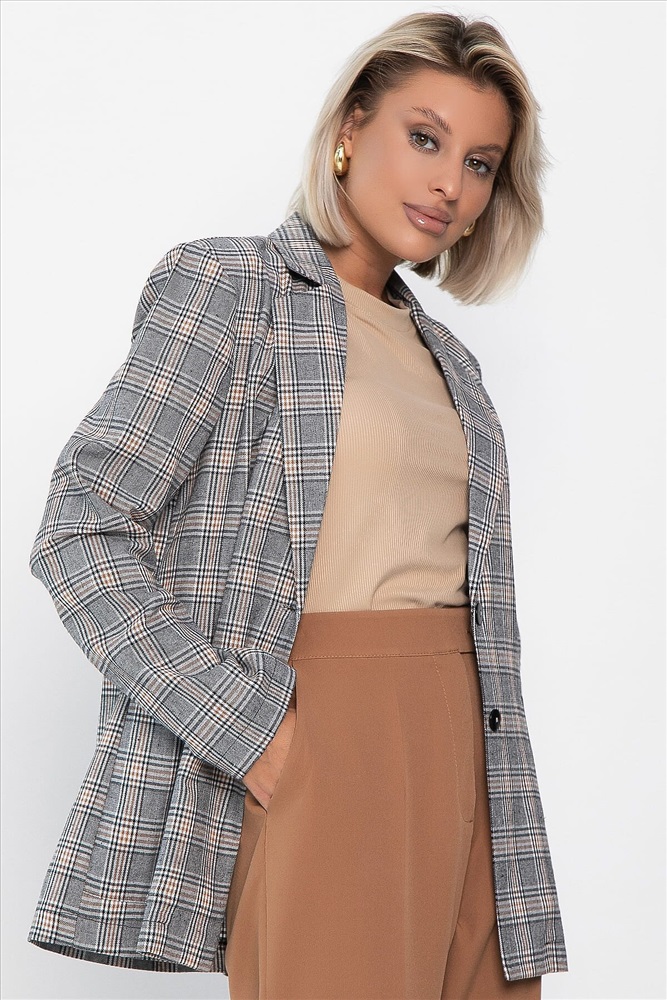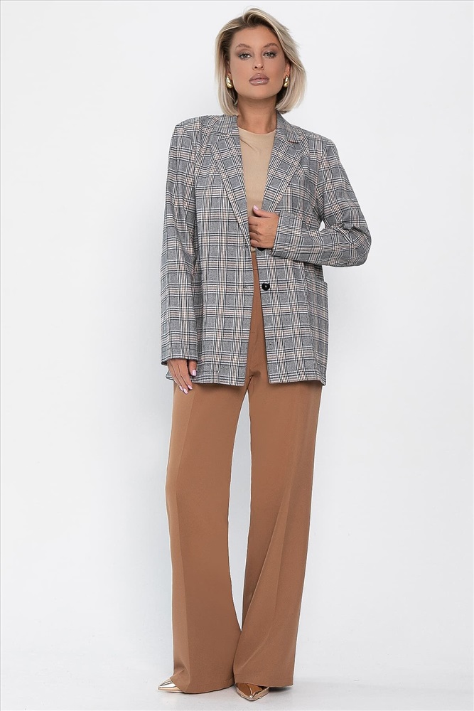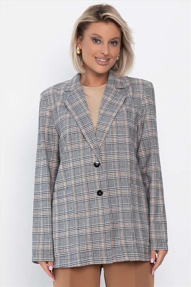 Создайте безупречный деловой образ с нашим классическим женским пиджаком в оттенке корицы с клетчатым принтом. Этот элегантный пиджак идеально подходит как для офисных встреч, так и для вечерних мероприятий. Он оснащён полными рукавами, которые придают ему стильный вид, а также подплечниками, добавляющими уверенности и строгости вашему образу. Удобные карманы позволят вам всегда иметь под рукой необходимые мелочи. Этот пиджак станет универсальным элементом вашего гардероба, легко сочетаясь с различными нарядами. Выберите стиль и комфорт с нашим классическим пиджаком!