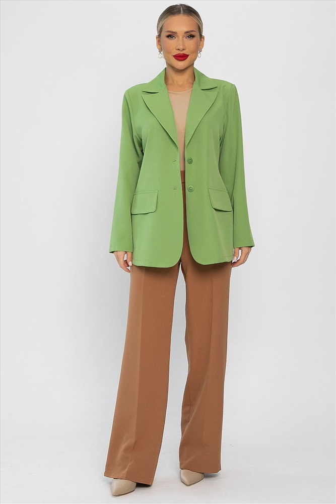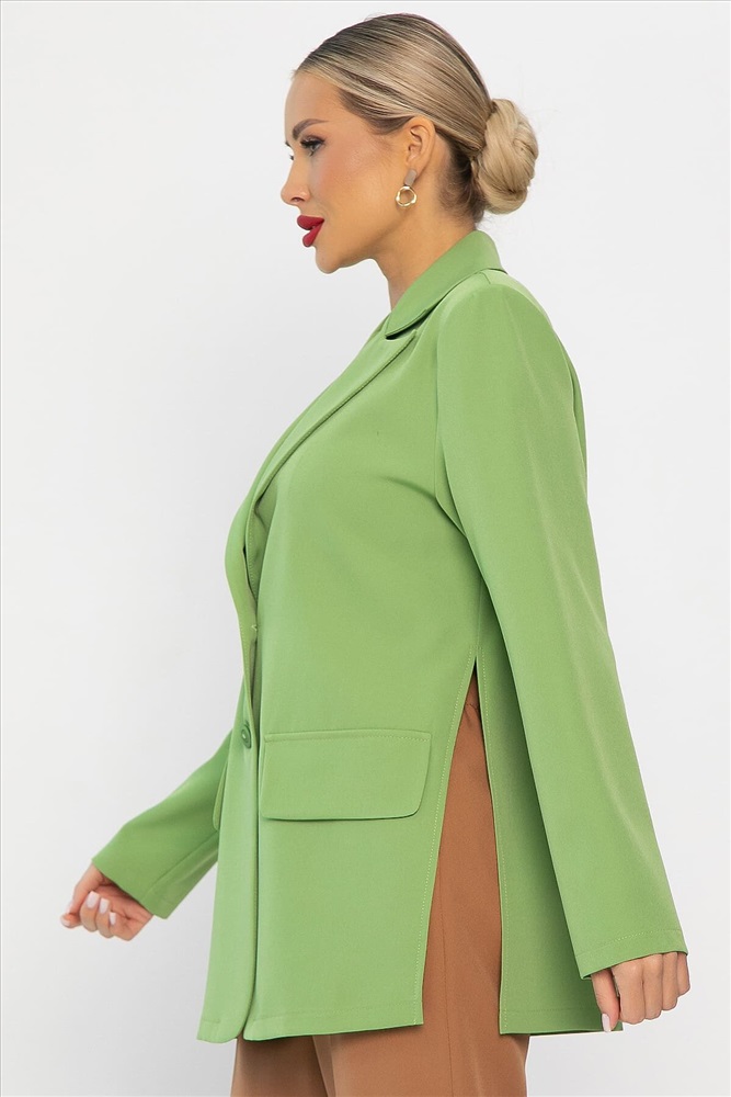 ID товара: 1185203 Состав: 65% Полиэстер, 30% Вискоза, 5% Эластан Сезон: Демисезон Длина: Средняя Фасон: Прямой Рукав: Длинные Вид застежки: Пуговицы Вырез горловины: V-образный, отложной воротничок Декоративные элементы: Разрезы Основная ткань: Полиэстер Стиль: классический Страна бренда: Россия Страна производства: Россия Состав : 65% полиэстер, 30% вискоза, 5% эластан Материал : костюмный Цвет : Зеленый Принт : отсутствует Силуэт : прямой Карманы : Отсутствуют Подкладка : Отсутствует Вид застежки : пуговицы Декоративные элементы : ремень в комплекте Длина : 44-75 см, 46-75 см, 48-76 см, 50-77 см, 52-78 см, 54-79 см Отснято с топом Б13054-33М [ https://ltcollection.ru/catalog/bluzki/166641/ ] и с брюками Б14106-33М [ https://ltcollection.ru/catalog/bryuki/196505/ ] Элегантный пиджак прямого кроя приятного зелёного цвета — идеальное сочетание стиля и комфорта. Выполненный из высококачественных материалов, он обеспечивает отличную посадку и свободу движений. Этот пиджак станет ярким акцентом в вашем гардеробе, легко сочетаясь как с классическими, так и с повседневными образами. Добавьте свежести и уверенности в свой стиль с этим универсальным и модным изделием! Внимание! Рекомендуем ориентироваться на размерную сетку и выбирать свой привычный размер, согласно размерной таблице. *Допуск отклонения длины при массовом производстве 1-3 см является нормой. Уход за изделием: Ручная стирка или стирка в машине при температуре до 30 °C, деликатный режим. Не использовать отбеливатели. Разрешена глажка при температуре до 110 °C. При глажке использовать специальную насадку на подошве утюга, гладить с паром. Не замачивать и не выжимать. Стирать изделие наизнанку, отдельно от других вещей. Комментарии к товару