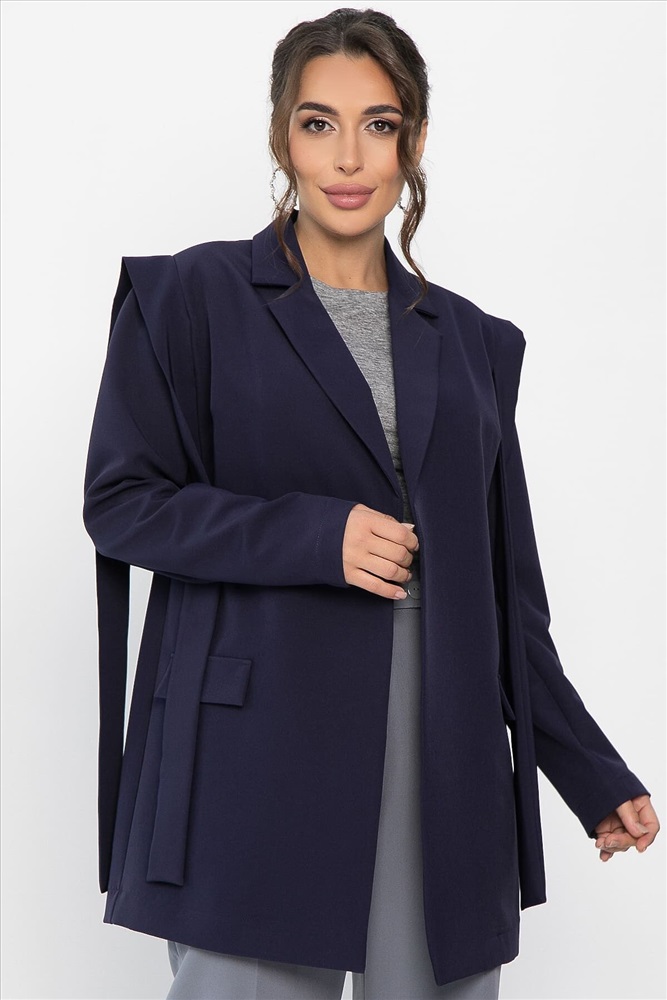 С этим эффектным и модным жакетом вы сможете создать неповторимый образ! Обратите внимание на оригинальные детали — декоративные завязки на плечах, которые придают вашему наряду особую изюминку. Также в модели предусмотрены подплечники. Этот жакет прекрасно дополнит любой образ и станет идеальным выбором для официальных мероприятий, свиданий, вечеринок или повседневной носки. Он позволит вам раскрыть свой стиль и экспериментировать с различными аксессуарами и элементами гардероба.