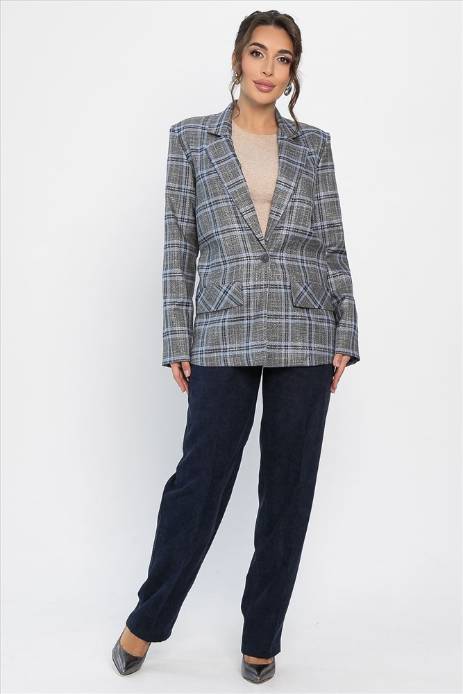 ID товара: 1187841 Состав: 65% Полиэстер, 30% Вискоза, 5% Эластан Сезон: Демисезон Длина: Средняя Фасон: Прямой Рукав: Длинные Вид застежки: Пуговица Вырез горловины: V-образный, отложной воротник Рисунок: Клетка Декоративные элементы: Принт Основная ткань: Полиэстер Стиль: классический Страна бренда: Россия Страна производства: Россия Состав : 65% полиэстер, 30% вискоза, 5% эластан Материал : костюмный с добавлением тонкой нити люрекса Цвет : Серый Принт : клетка Силуэт : прямой Карманы : Отсутствуют Подкладка : Отсутствует Вид застежки : пуговица Декоративные элементы : отсутствуют Длина : 44-75 см, 46-75 см, 48-76 см, 50-77 см, 52-78 см, 54-79 см Отснято с брюками Б14180-19М Элегантный женский жакет прямого кроя — находка для создания стильных и актуальных образов. Он выполнен из костюмной ткани с добавлением тонкой нити люрекса, что придает изделию изысканный блеск и особую текстуру. Этот жакет отлично подойдет как для праздничных мероприятий, так и для повседневной носки, подчеркивая ваш стиль и индивидуальность. Комфортная посадка и универсальность делают его незаменимым элементом модного гардероба. Внимание! Рекомендуем ориентироваться на размерную сетку и выбирать свой привычный размер, согласно размерной таблице. *Допуск отклонения длины при массовом производстве 1-3 см является нормой. Уход за изделием: Ручная стирка или стирка в машине при температуре до 30 °C, деликатный режим. Не использовать отбеливатели. Разрешена глажка при температуре до 110 °C. При глажке использовать специальную насадку на подошве утюга, гладить с паром. Не замачивать и не выжимать. Стирать изделие наизнанку, отдельно от других вещей. Комментарии к товару