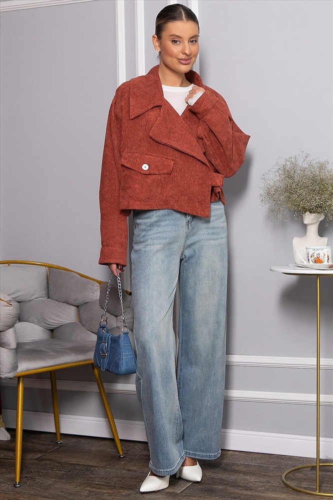 ID товара: 1199329 Состав: 65% Полиэстер, 30% Вискоза, 5% Эластан Сезон: Демисезон Длина: Укороченная Фасон: Свободный Рукав: Длинные Вырез горловины: V-образный, отложной воротник Тип карманов: Накладные Основная ткань: Полиэстер Стиль: Повседневный Страна бренда: Россия Страна производства: Россия Состав : 65% полиэстер, 30% вискоза, 5% эластан Материал : вельвет Цвет : коричневый Принт : отсутствует Силуэт : свободный Карманы : есть Подкладка : отсутствует Вид застежки : застежка на хлястик Декоративные элементы : ассиметричный накладной карман с клапаном Длина : one size (44-50)-51 см Отснят с джинсами Б13806-4М Укороченный вельветовый жакет – это утонченный и женственный элемент гардероба, способный дополнить любой образ. Он отлично подходит как для повседневных прогулок, так и для создания романтичного ансамбля. Рекомендуем сочетать его с брюками из той же ткани прямого кроя. Жакет имеет оригинальную застежку на хлястик. На правой полочке расположен асимметричный накладной карман с клапаном. Рукава со спущенной проймой, а низ рукава оформлен застегивающейся манжетой. Внимание! Рекомендуем ориентироваться на размерную сетку и выбирать свой привычный размер, согласно размерной таблице. *Допуск отклонения длины при массовом производстве 1-3 см является нормой. Уход за изделием: Ручная стирка или стирка в машине при температуре до 30 °C, деликатный режим. Не использовать отбеливатели. Разрешена глажка при температуре до 110 °C. При глажке использовать специальную насадку на подошве утюга, гладить с паром. Не замачивать и не выжимать. Стирать изделие наизнанку, отдельно от других вещей. Комментарии к товару