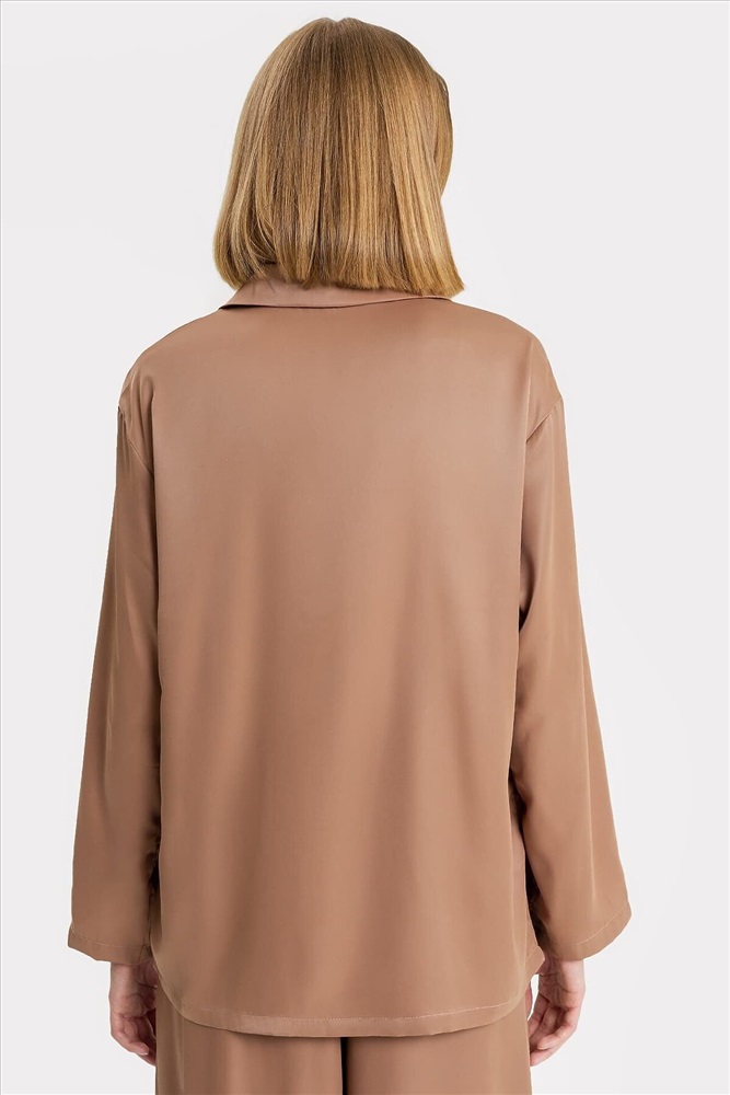 ID товара: 904096 Состав: 97% Полиэстер; 3% Эластан Сезон: Весна/Лето Рукав: длинные Вид застежки: Пуговицы Тип карманов: Без карманов Декоративные элементы: Без элементов Покрой: свободный Уход: Деликатная стирка при 30 градусах Фактура материала: Тканое полотно Страна бренда: Беларусь Страна производства: Белоруссия Силуэт прямой и свободный, рукава длинные втачные, линия плеча немного спущена. Центральная застежка на пуговицы, воротник отложной. Низ изделия и низ рукавов застрочен швом в подгибку. Комментарии к товару