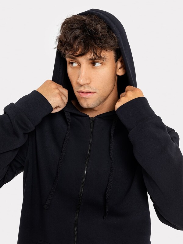 Жакет выполнен из трикотажного полотна футер. Жакет полуприлегающего силуэта на подкладке из кулирки. Горловина округлой формы, в горловину втачан капюшон.