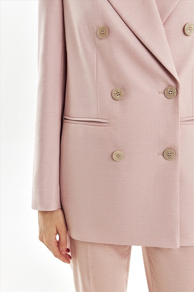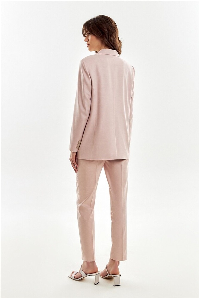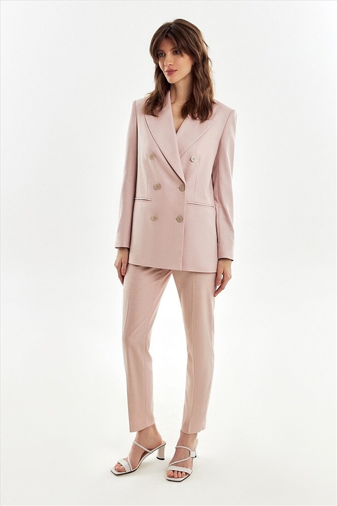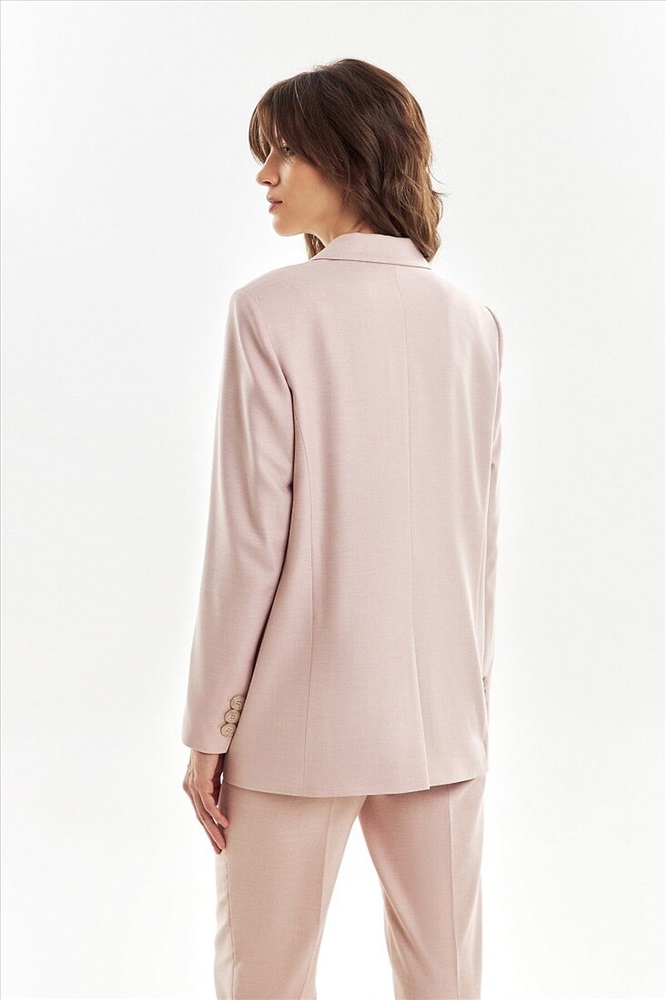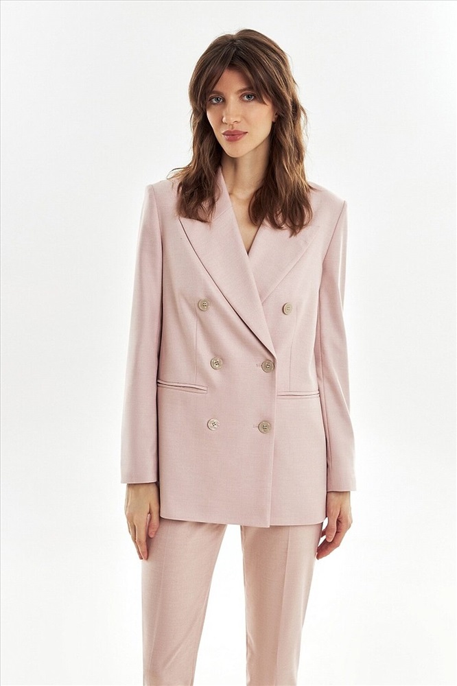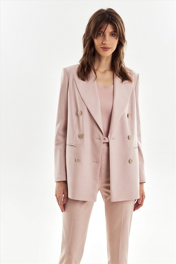ID товара: 1094409 Состав: Полиэстер 62%, Вискоза 35%, Эластан 3% Подкладка- Полиэстер 55%, Вискоза 45% Сезон: Весна/Лето Длина: Средняя Фасон: Прямой Рукав: Длинные Вид застежки: Пуговицы Вырез горловины: V-образный Рисунок: нет Основная ткань: Полиэстер Стиль: Деловой Страна бренда: Россия Страна производства: Россия Прямой двубортный жакет из текстурной костюмной ткани пудрового цвета. Жакет с классическим широким лацканом, рельефами и прорезными карманами. Жакет немного удлинен. Рукав полной длины. Комментарии к товару