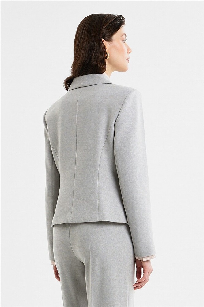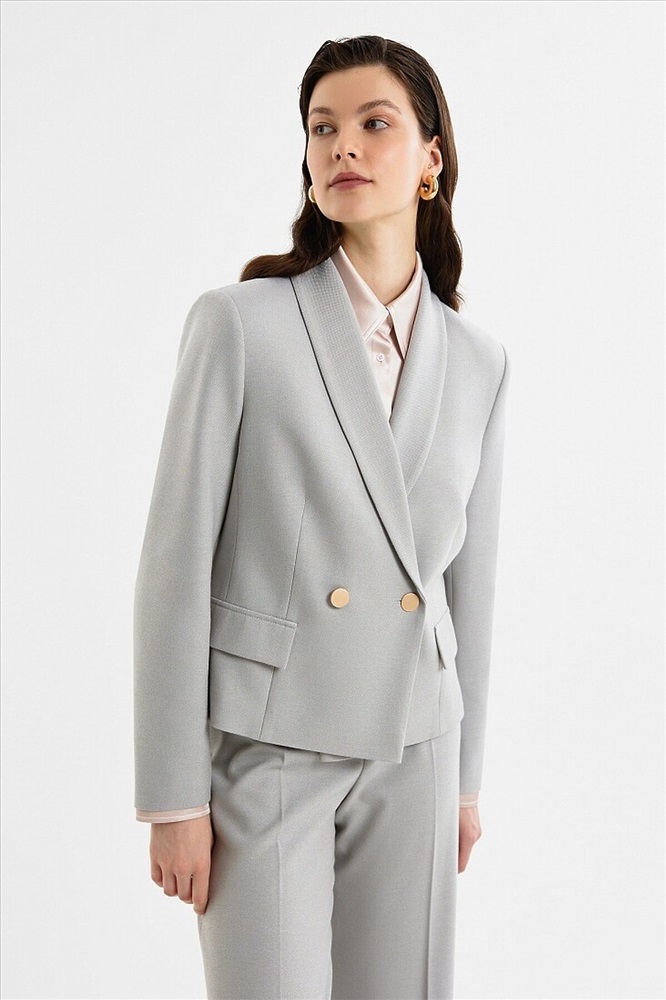 ID товара: 1094418 Состав: Полиэстер 62%, Вискоза 35%, Эластан 3% Подкладка- Полиэстер 55%, Вискоза 45% Сезон: Весна/Лето Длина: Укороченная Фасон: Полуприталенный Рукав: Длинные Вид застежки: Пуговицы Вырез горловины: Отложной воротник Рисунок: нет Основная ткань: Полиэстер Стиль: Деловой Страна бренда: Россия Страна производства: Россия Укороченный приталенный двубортный жакет с воротником шалькой из фактурной костюмной ткани с вискозой. По переду прорезные карманы с клапанами с акцентными золотистыми пуговицами. Рукав полной длины. Жакет на подкладке. Комментарии к товару