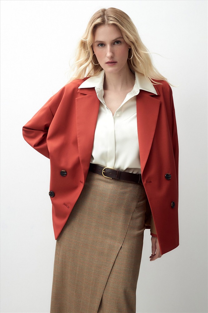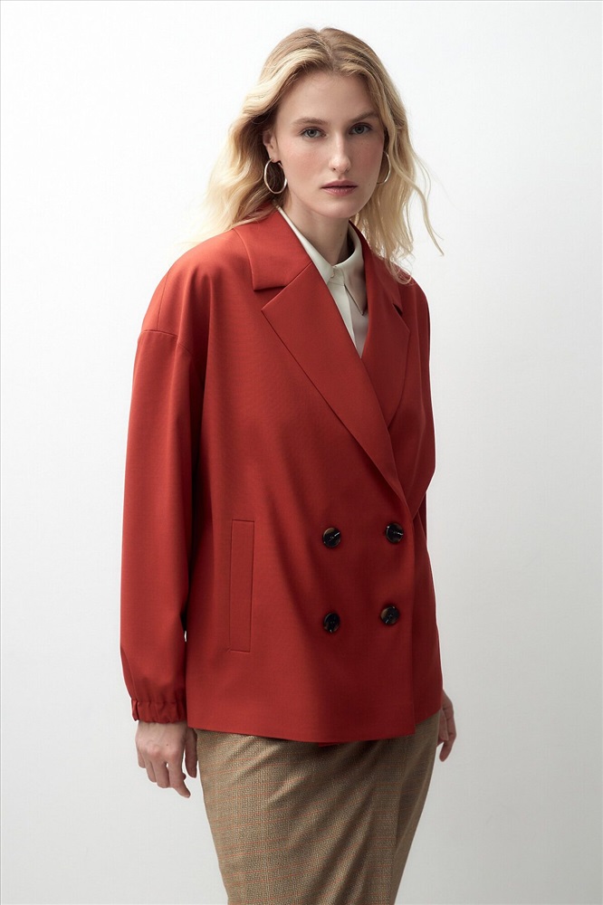 ID товара: 970240 Состав: Полиэстер 69%, Вискоза 29%, Эластан 2%; Подкладка- Полиэстер 100% Сезон: Демисезон Длина: Удлиненная Фасон: Свободный крой Рукав: 1/2 Вид застежки: Пуговицы Вырез горловины: V-образный, отложной воротник Тип карманов: Прорезные Основная ткань: Полиэстер Стиль: Деловой стиль Страна бренда: Россия Страна производства: Россия Удлиненный двубортный жакет силуэта кокон с мягким спущенным плечом и рукавами на резинке. Жакет с английским воротником на пуговицах. Прорезные карманы листочки под углом. Комментарии к товару