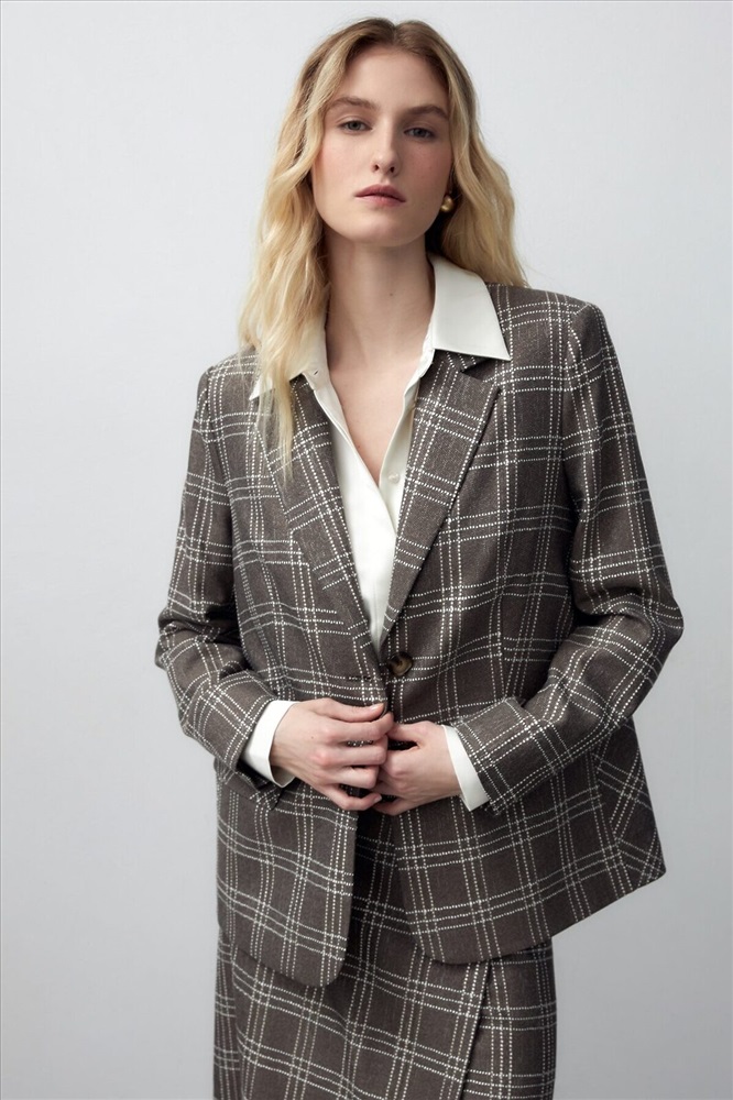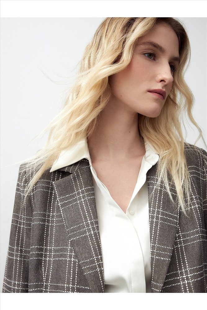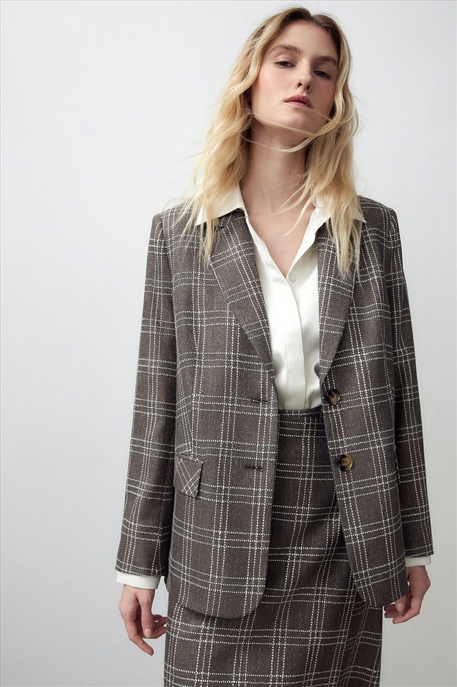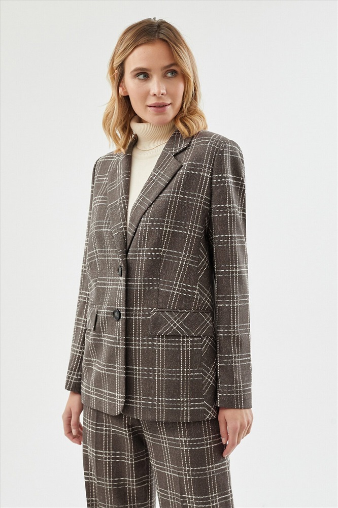 ID товара: 970279 Состав: Полиэстер 55%, Вискоза 31%, Полиакрил 11%, Эластан 3% Сезон: Демисезон Длина: Средняя Фасон: Прямой Рукав: длинные Вид застежки: Пуговицы Вырез горловины: V-образный Рисунок: Клетка Тип карманов: Прорезные Основная ткань: Полиэстер Стиль: Деловой стиль Страна бренда: Россия Страна производства: Россия Классический прямой однобортный жакет из фактурной ткани в клетку на двух пуговицах. Жакет полностью на подкладке с прорезными карманами и клапанами. Комментарии к товару