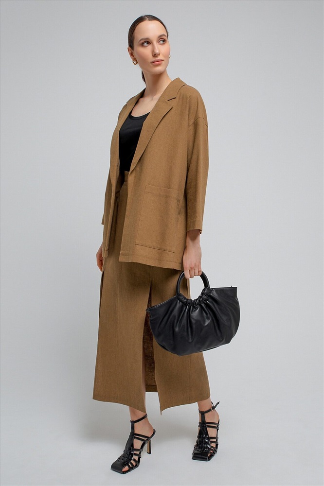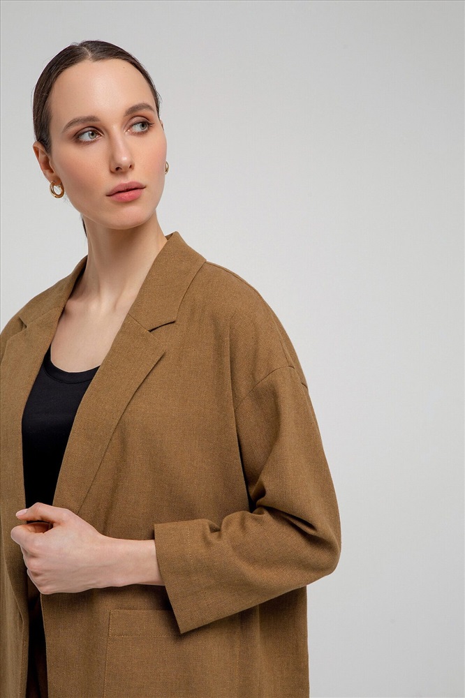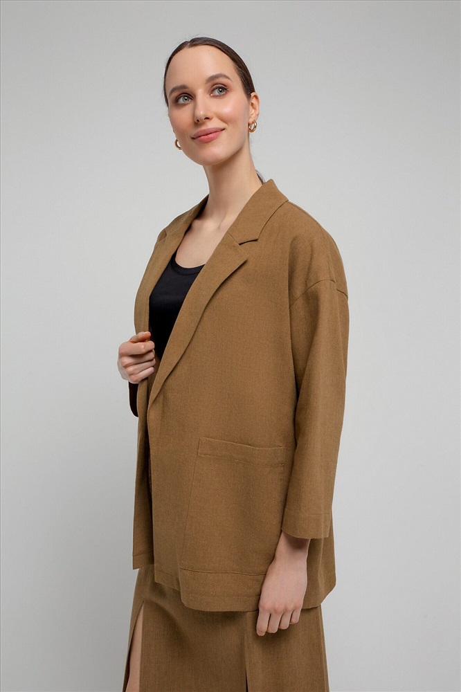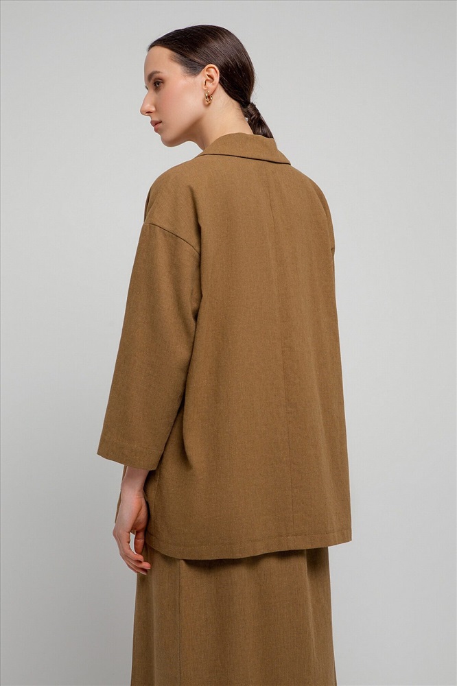 ID товара: 970676 Состав: Хлопок 70%, Лен 30% Сезон: Весна/Лето Длина: Средняя Фасон: Свободный крой Рукав: 3/4 Тип карманов: накладной Основная ткань: Хлопок Стиль: Деловой Страна бренда: Россия Страна производства: Россия Легкий свободный летний жакет из фактурной льняной ткани без застежки и подкладки, с одним накладным карманом. В паре с юбкой-миди составят трендовый образ для городского лета. Комментарии к товару
