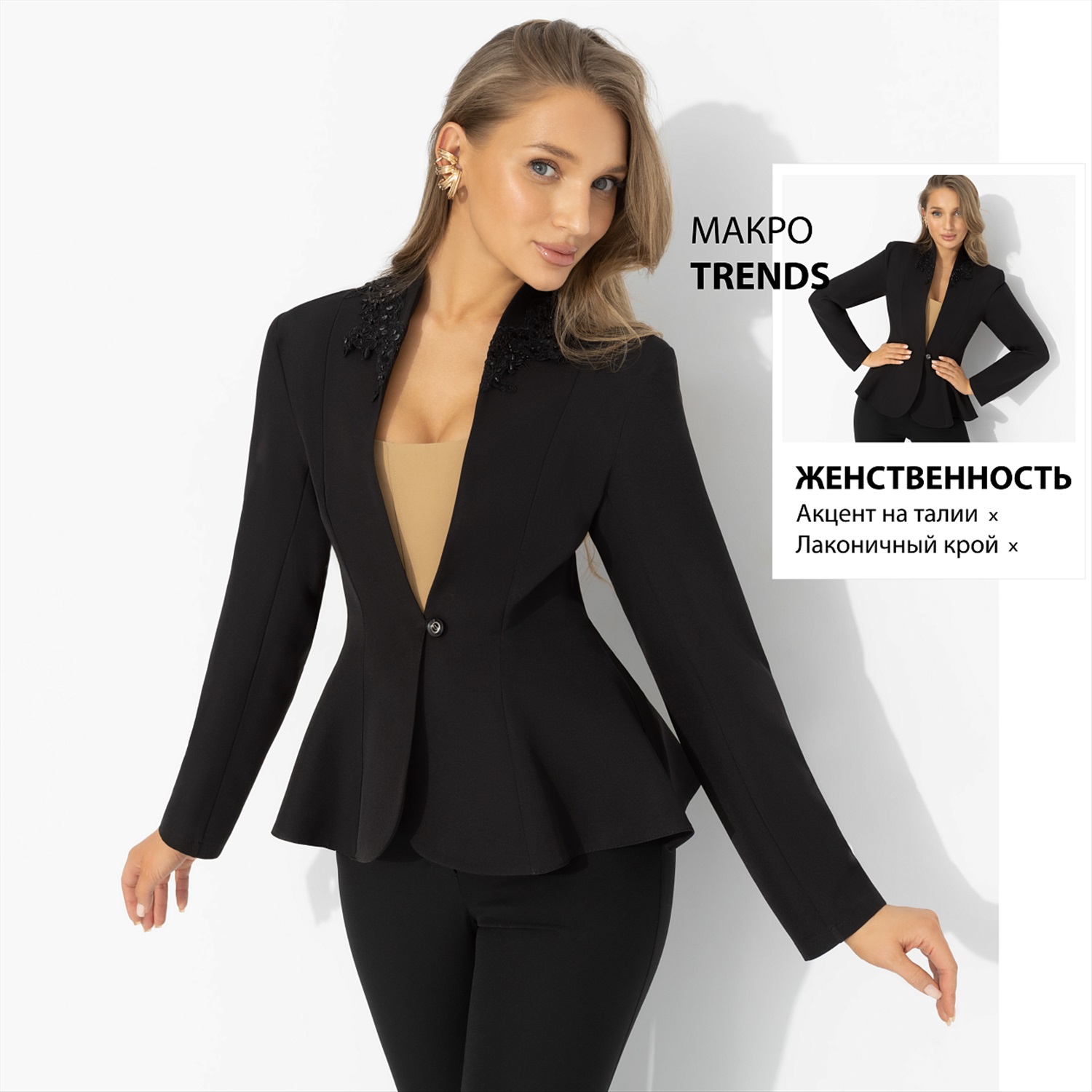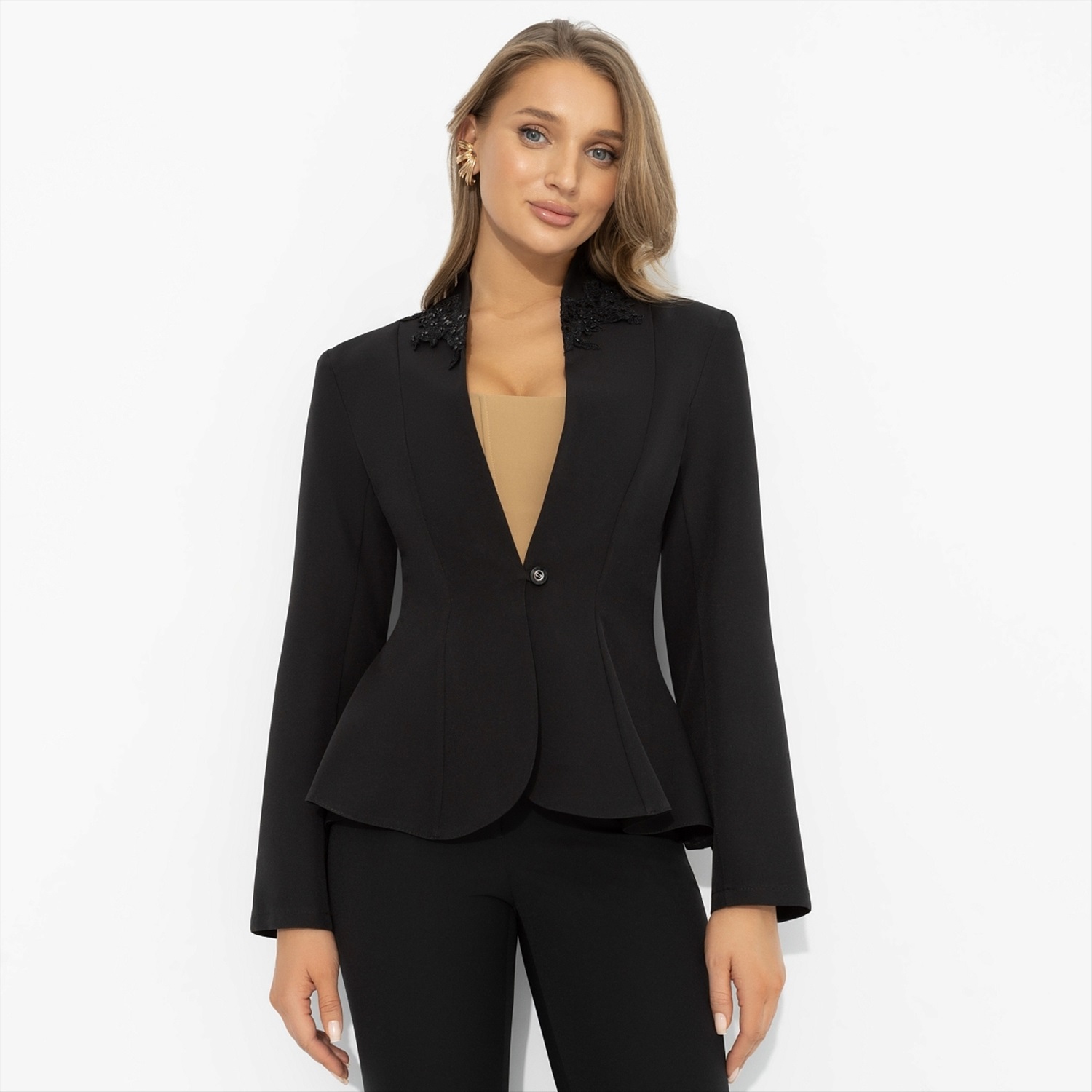 Сложится нелегко дружба пламени с мотыльком? Как бы не так. Жакет «Красиво быть смелой» – для тех, кто не боится риска и не прячет свою силу за осторожностью. А значит – для тебя. Жакет ЧАРУТТИ из гладкой костюмной ткани: приталенный силуэт с баской подчеркивает изящную фигуру. О твоей уверенности говорит четкая линия плеч и аккуратные лацканы с декором. Силуэт потрясающе работает в движении, поэтому – лети! Жакет на подплечниках.