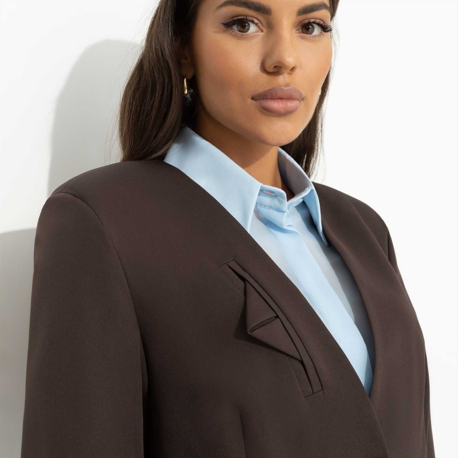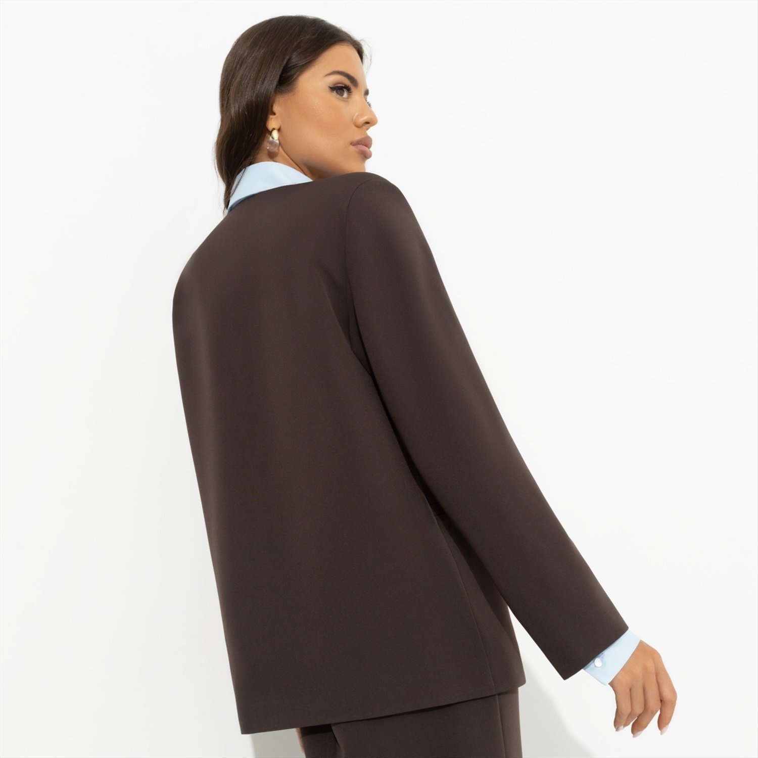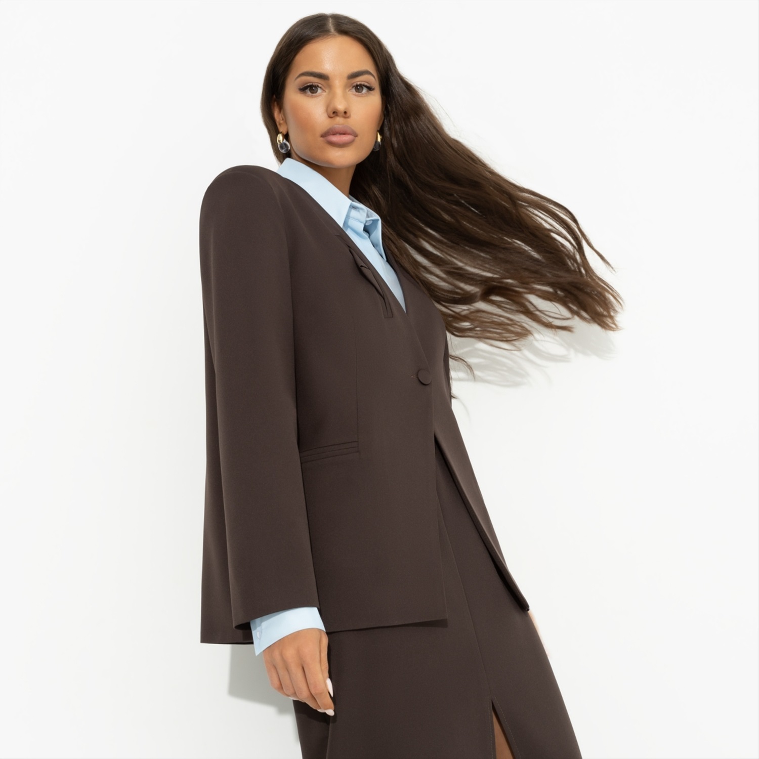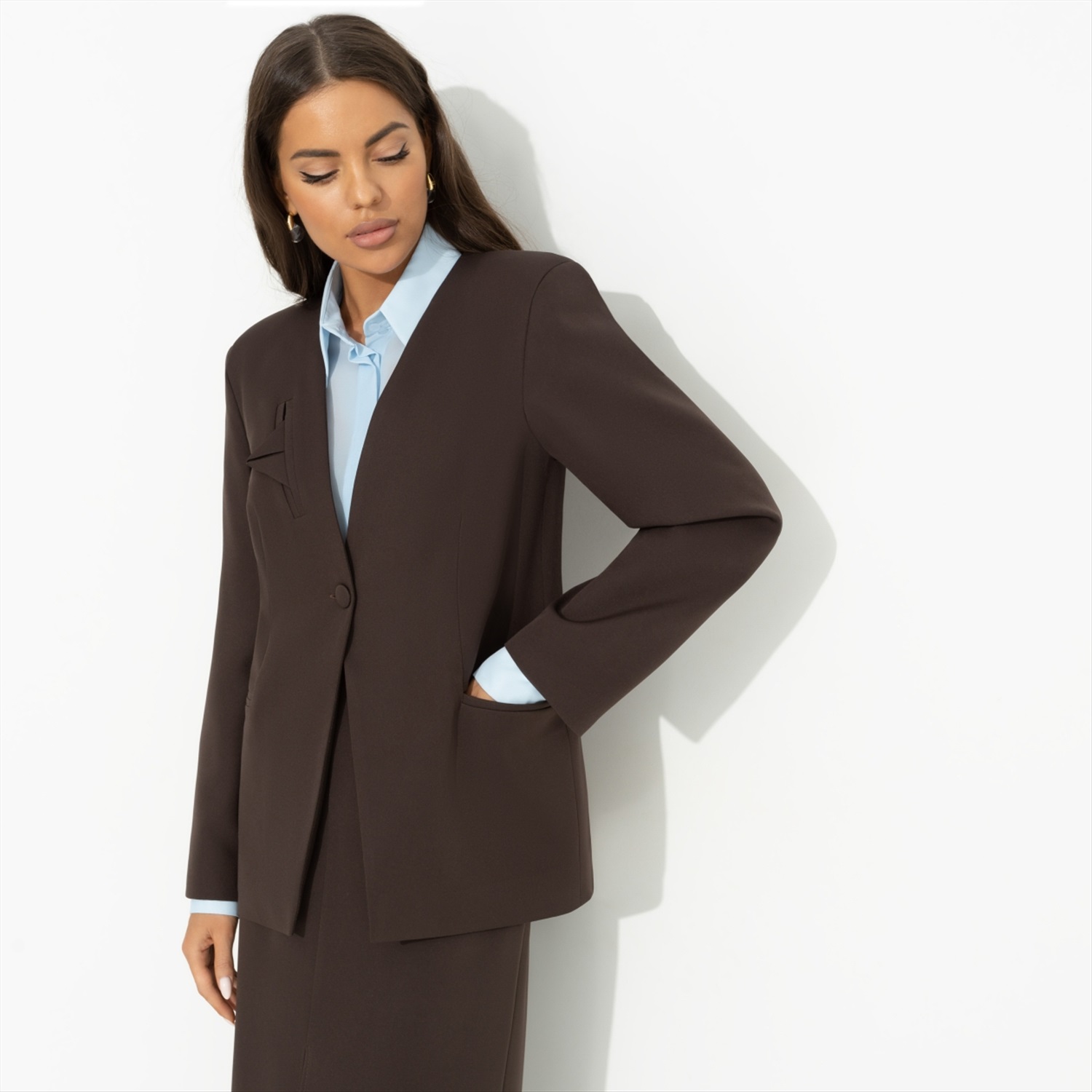 По европейскому этикету самым подходящим деловому стилю считается коричневый цвет. Черный – на праздник, синий – на вечеринку, коричневый – на работу. Мы в CHARUTTI совершенно согласны с правилом. Рекомендуем дополнить землистый цвет нежно-голубой рубашкой для достижения вау-эффекта. Жакет однобортный без лацканов. Прямой крой. Жакет на подплечниках, есть карманы. Изделие с подкладом. Жакет «Власть в деталях» из ткани «Барби» — это не просто элемент гардероба, а настоящий символ утончённого вкуса и стиля. Когда дело касается делового дресс-кода, коричневый цвет, по европейскому этикету, является наиболее подходящим. В сочетании с нежно-голубой рубашкой он создаёт эффектный контраст, который подчеркнёт вашу уверенность и профессионализм. Этот однобортный жакет без лацканов, с прямым кроем, на подплечниках и с карманами станет неотъемлемой частью вашего офисного образа. Подкладка добавляет изделию дополнительный комфорт и долговечность, обеспечивая идеальную посадку. Если вы хотите приобрести этот жакет оптом, это станет отличным решением для создания единого корпоративного стиля. Женский жакет «Власть в деталях» подходит для тех, кто ценит качество и внимание к деталям. Изготовленный из высококачественного материала «Барби», он обеспечит вам тепло и уют в холодное время года. Этот жакет также доступен в больших размерах, что делает его идеальным выбором для любого типа фигуры. Тёплые и трикотажные жакеты женские — это не только практичность, но и стильный элемент вашего гардероба, который легко комбинируется как с классическими брюками, так и с юбками. Особенно выгодно приобретать такие жакеты оптом, чтобы всегда иметь возможность предложить своим клиентам разнообразие и актуальность. Оптовая покупка жакета «Власть в деталях» станет выгодным вложением для вашего бизнеса. Этот классический женский жакет отличается не только своим стилем, но и функциональностью. Он идеально подходит как для официальных мероприятий, так и для повседневной офисной обстановки. Укороченный крой и твидовая текстура придают ему особый шарм и изысканность. Приобретая жакеты оптом, вы сможете удовлетворить потребности самых требовательных клиентов, которые ищут идеальное сочетание элегантности и комфорта. Жакеты от Charutti — это всегда гарантия качества и модного дизайна, что делает их особенно привлекательными для оптовых закупок. Комментарии к товару