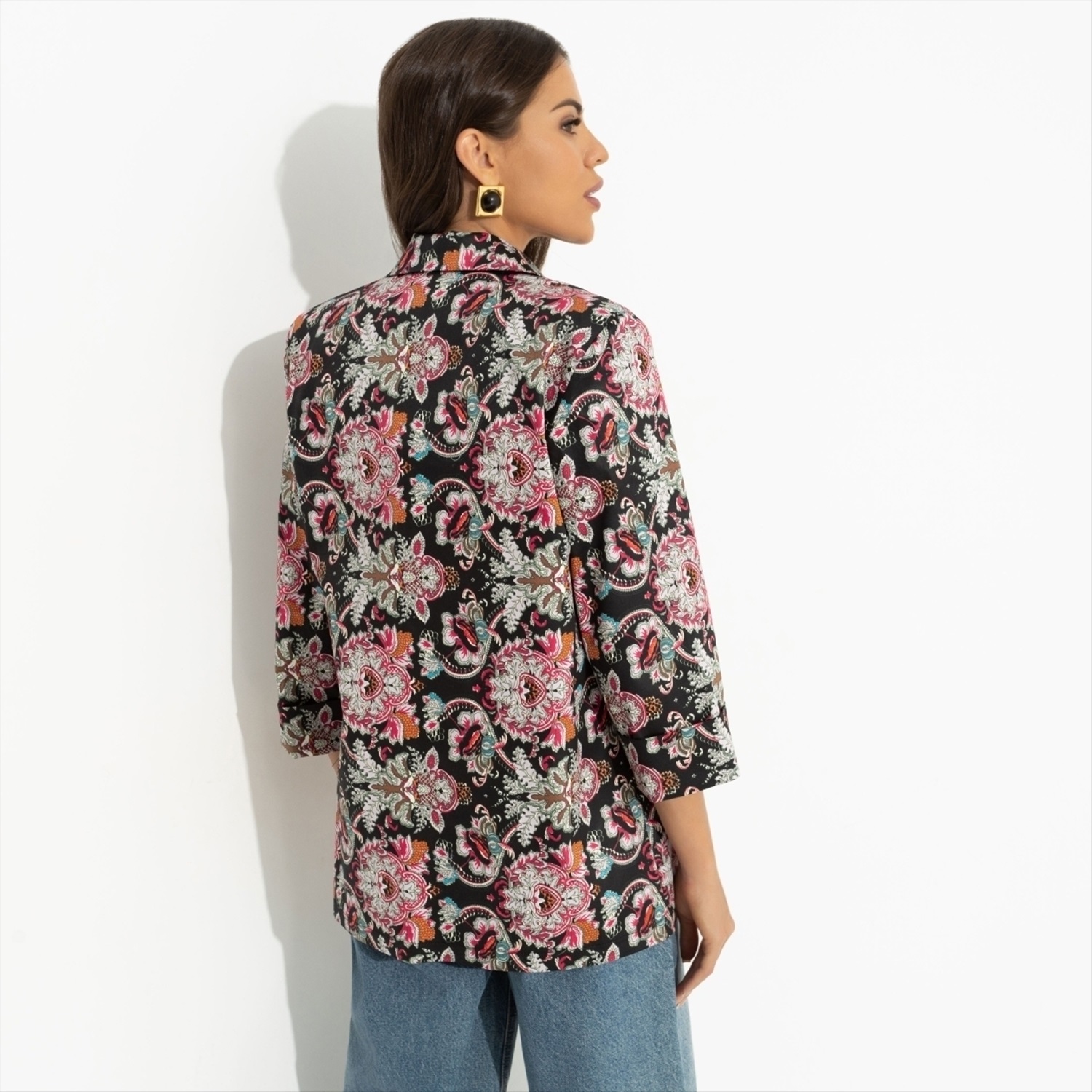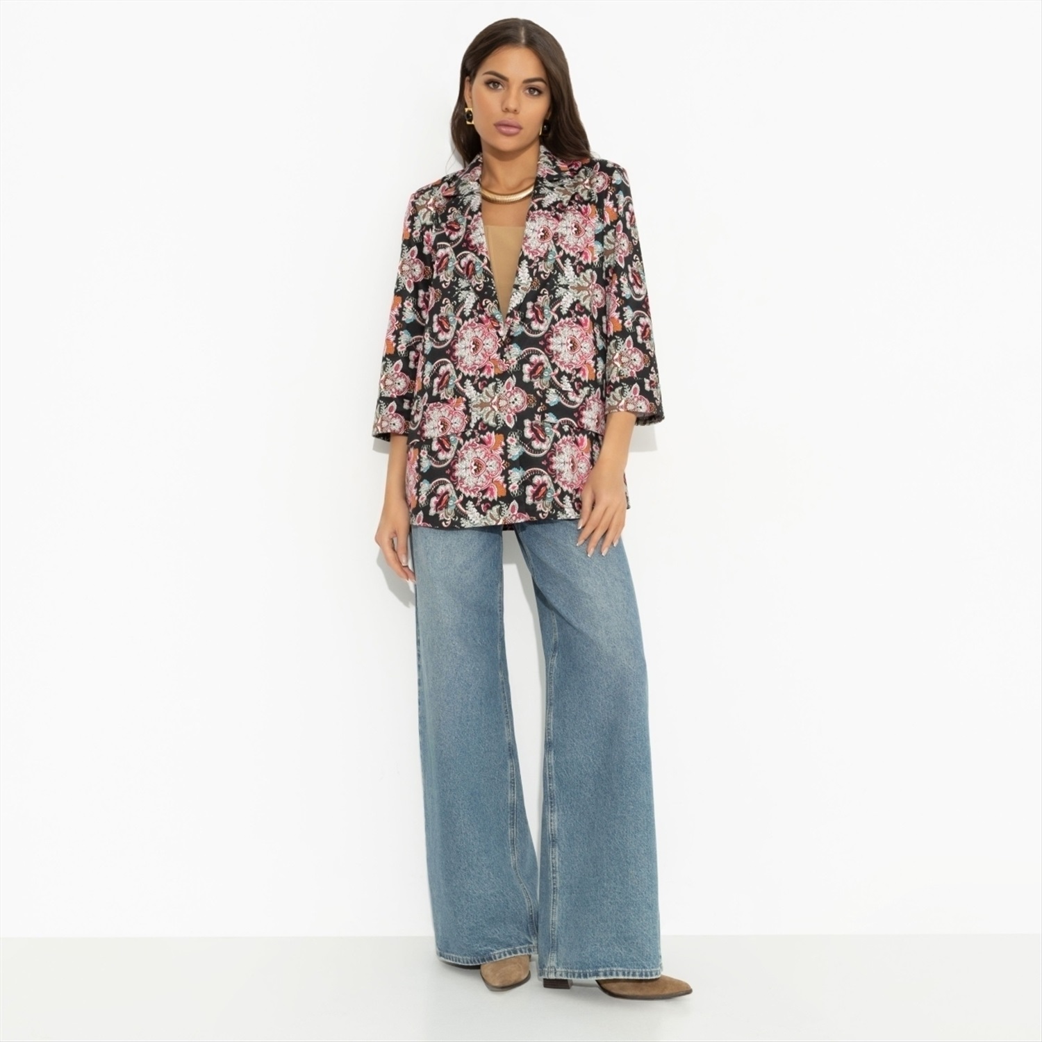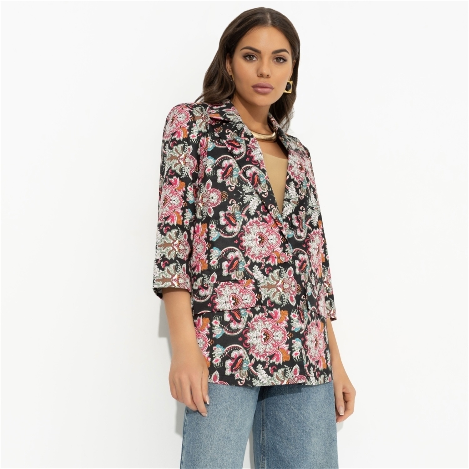Время обратиться к прекрасному. Стилизуем предмет искусства в виде жакета от CHARUTTI с преметами повседневности. Выбираем нетривиальные сочетания с джинсами или джинсовыми юбками. Надеваем поверх делового платья или комбинации. Жакет однобортный прямого кроя с лацканами. Рукава укорочены. Имитация карманов. Изделие на подплечниках.