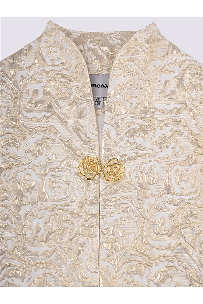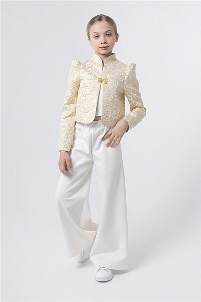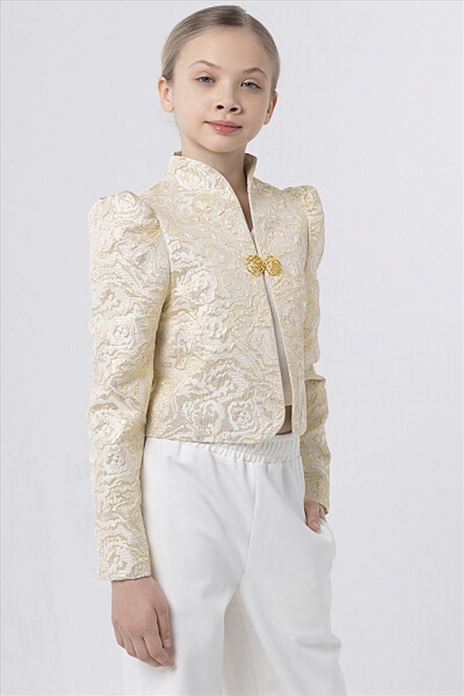 ID товара: 1221219 Акции: -5%, до 24.11.2025 Состав: 100% Полиэстер; 50% Вискоза, 50% Полиэстер Сезон: Демисезон Длина: Укороченная Фасон: Полуприлегающий Рукав: Длинные Вырез горловины: Воротник-стойка Основная ткань: Полиэстер Стиль: Нарядный Страна бренда: Россия Страна производства: Россия Укороченный жакет для девочек — элегантный выбор для праздничных вечеринок и торжественных событий. Крой и детали: укороченный силуэт, рукава «фонарики» и воротник-стойка придают образу особый шарм. Застёжка: изящная застёжка на груди обеспечивает удобство и стильное завершение образа. Сочетания: легко комбинируется с пышными юбками, брюками или платьями, создавая праздничный и модный образ. Комментарии к товару