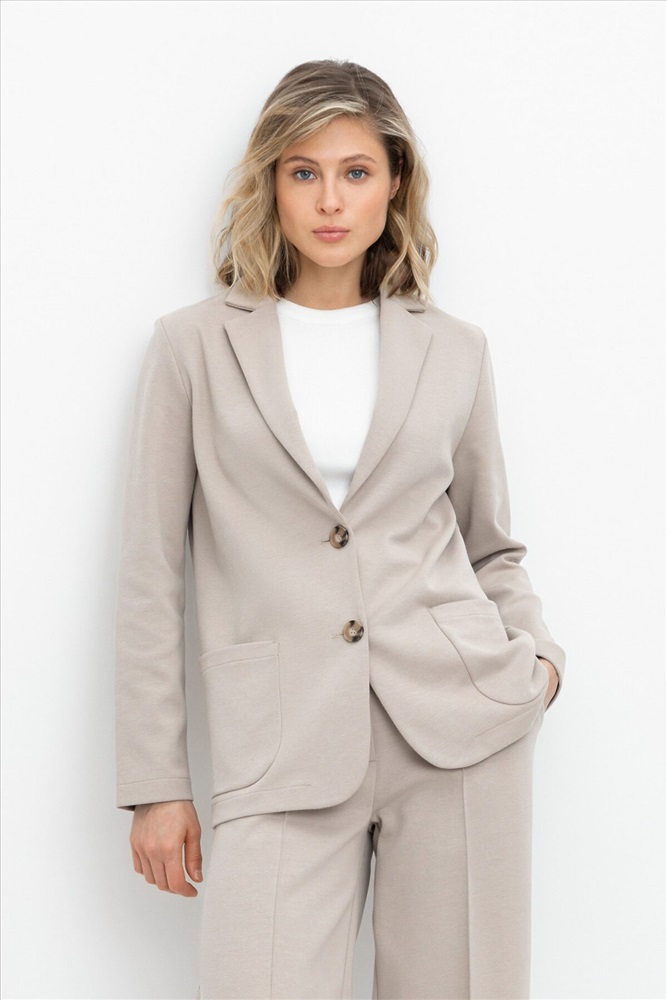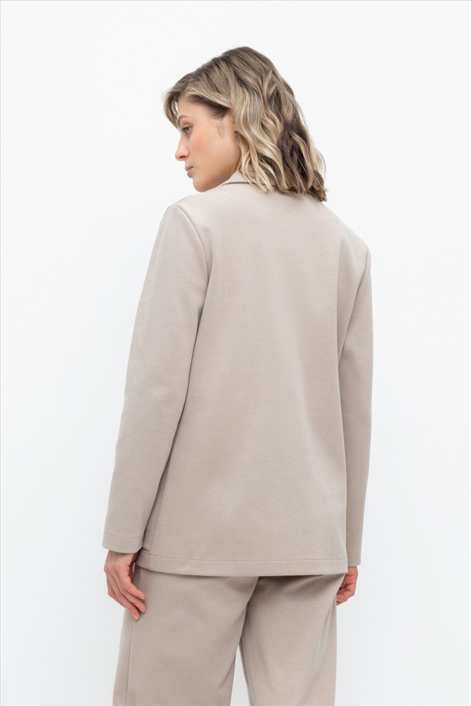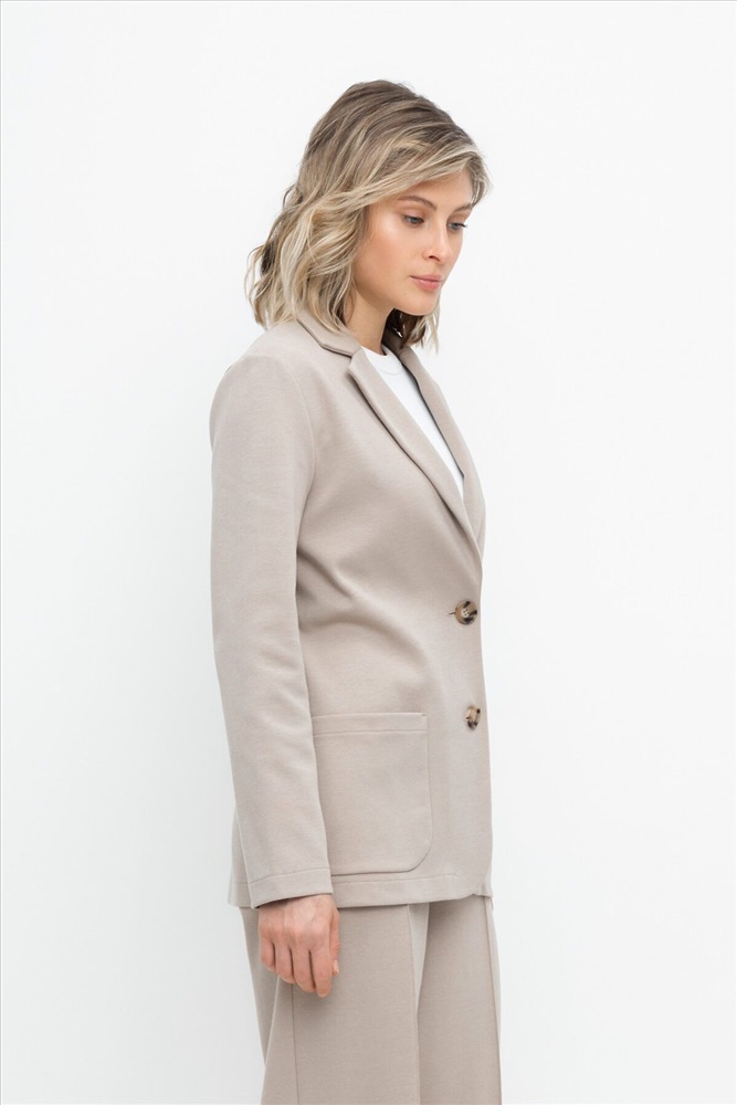 Женский жакет с карманами прямого кроя с застежкой на пуговицы и двумя накладными карманами из плотного гладкого трикотажа интерлок. Все трикотажные изделия производятся в соответствии с нормами Швейцарского сертификата ЭкоТекс. Сделано в России