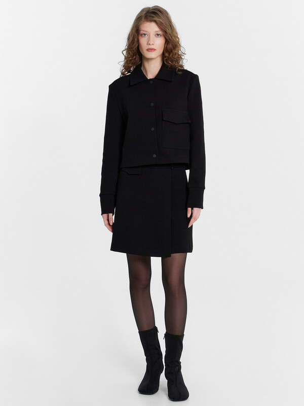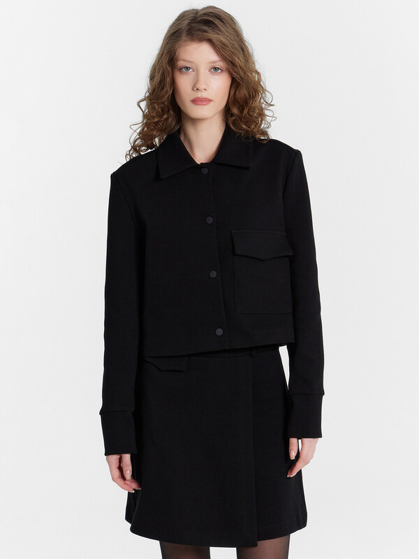 Женский укороченный жакет добавит стиль и элегантность в ваш гардероб. Модель прямого кроя с отложным воротником и застежкой на кнопки создаст современный классический образ. Накладной карман с клапаном слева на груди добавляет функциональности, а длинные рукава с манжетами и складками по низу придают особый шарм. Изделие выполнено из интерлока - материала, отличающегося высокой плотностью и эластичностью. Он прочный, износостойкий и сохраняет свою форму даже после многочисленных стирок. Этот жакет станет прекрасным дополнением к вашему гардеробу, идеально подходящим для создания элегантных и стильных образов на праздничные мероприятия и повседневные выходы.